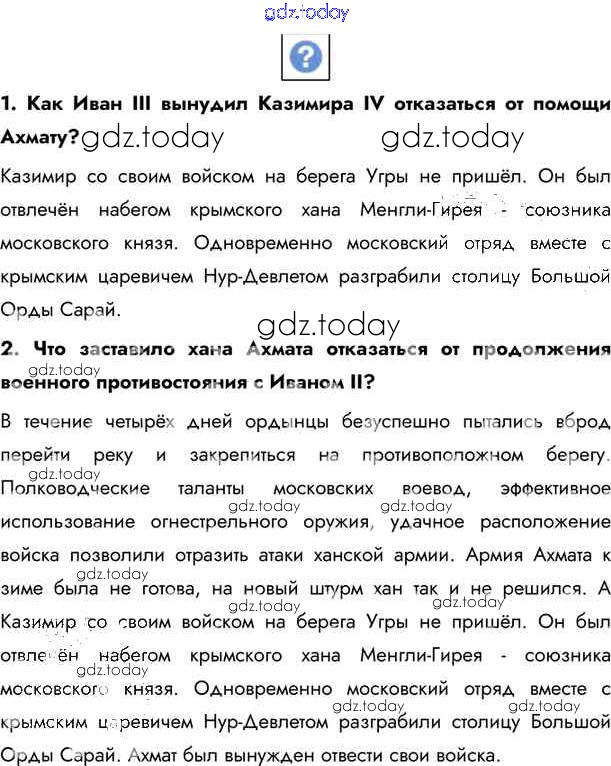 На страницах сайта gdz.today вы найдете учебный и вспомогательный материал, направленный на улучшения знаний школьной программы. ГДЗ - онлайн мир знаний §26. Иван III — основатель Российского государства Учебник 2020 (решение) стр.230 Учебнику по Истории России для 6 класса Андреев, Федоров Дрофа, Дрофа Вертикаль 2016, 2020