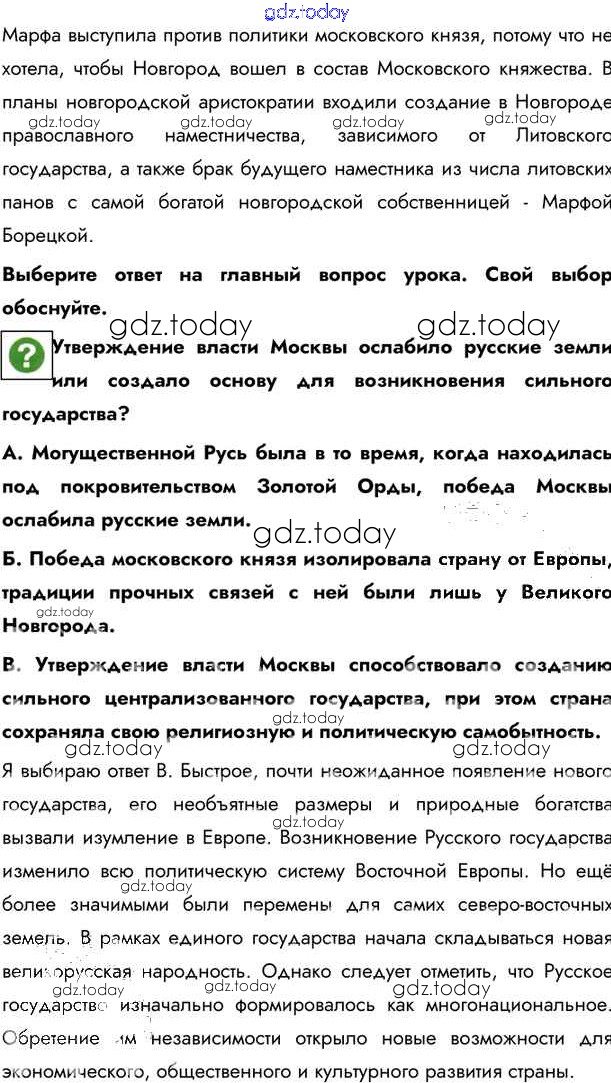На страницах сайта gdz.today вы найдете учебный и вспомогательный материал, направленный на улучшения знаний школьной программы. ГДЗ - онлайн мир знаний §26. Иван III — основатель Российского государства Учебник 2020 (решение) стр.234 Учебнику по Истории России для 6 класса Андреев, Федоров Дрофа, Дрофа Вертикаль 2016, 2020