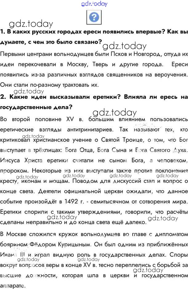 На страницах сайта gdz.today вы найдете учебный и вспомогательный материал, направленный на улучшения знаний школьной программы. ГДЗ - онлайн мир знаний §29. Русская православная церковь Учебник 2020 (решение) стр.254 Учебнику по Истории России для 6 класса Андреев, Федоров Дрофа, Дрофа Вертикаль 2016, 2020