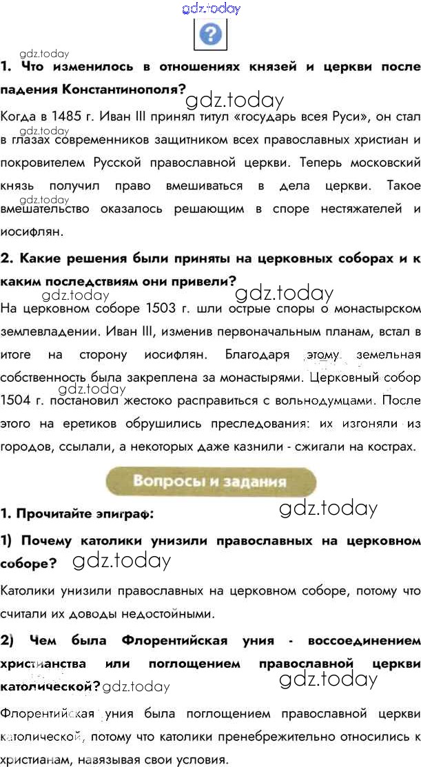 На страницах сайта gdz.today вы найдете учебный и вспомогательный материал, направленный на улучшения знаний школьной программы. ГДЗ - онлайн мир знаний §29. Русская православная церковь Учебник 2020 (решение) стр.256 Учебнику по Истории России для 6 класса Андреев, Федоров Дрофа, Дрофа Вертикаль 2016, 2020