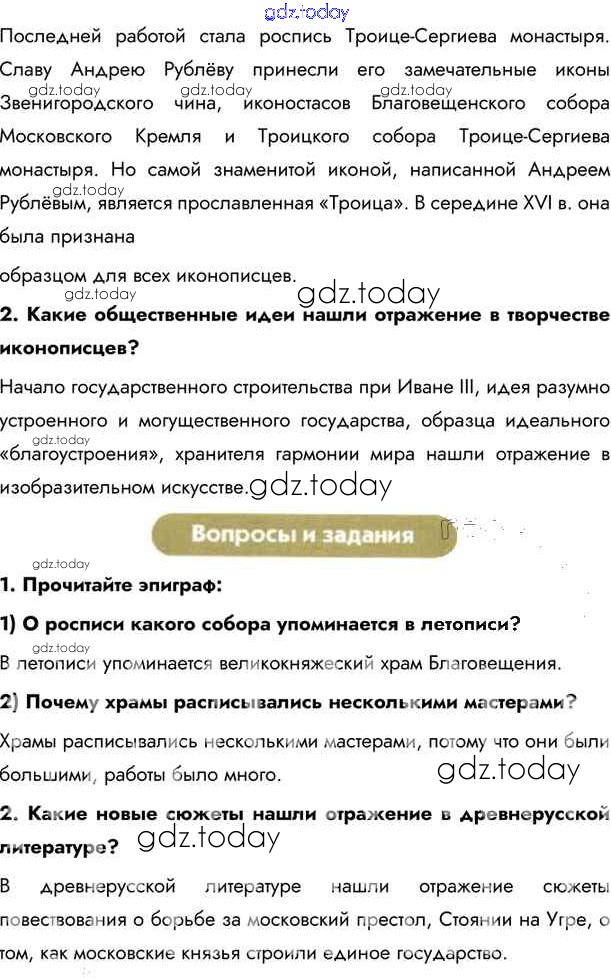 На страницах сайта gdz.today вы найдете учебный и вспомогательный материал, направленный на улучшения знаний школьной программы. ГДЗ - онлайн мир знаний §30. Достижения российской культуры Учебник 2020 (решение) стр.264 Учебнику по Истории России для 6 класса Андреев, Федоров Дрофа, Дрофа Вертикаль 2016, 2020