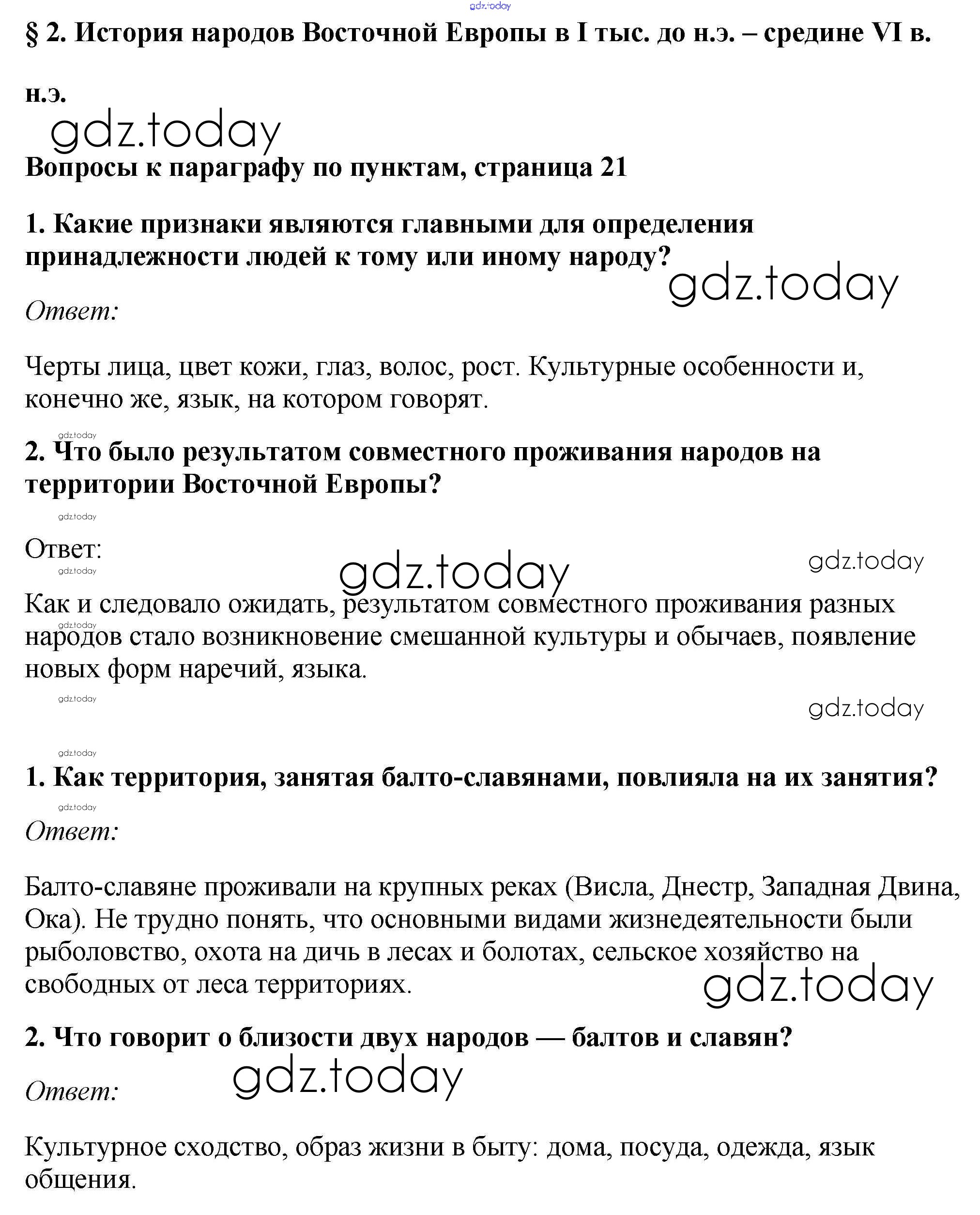 Ответы к §2. История народов Восточной Европы в I тыс. до н.э. – средине VI в. н.э. Учебник 2016 (решение) стр.21 Учебнику по Истории России для 6 класса Андреев, Федоров Дрофа, Дрофа Вертикаль 2016, 2020