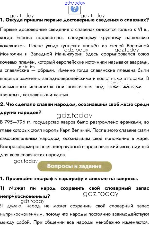 На страницах сайта gdz.today вы найдете учебный и вспомогательный материал, направленный на улучшения знаний школьной программы. ГДЗ - онлайн мир знаний §2. История народов Восточной Европы в I тыс. до н.э. – средине VI в. н.э. Учебник 2016 (решение) стр.24 Учебнику по Истории России для 6 класса Андреев, Федоров Дрофа, Дрофа Вертикаль 2016, 2020