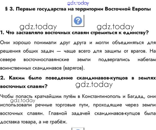 На страницах сайта gdz.today вы найдете учебный и вспомогательный материал, направленный на улучшения знаний школьной программы. ГДЗ - онлайн мир знаний §3. Первые государства на территории Восточной Европы Учебник 2016 (решение) стр.29 Учебнику по Истории России для 6 класса Андреев, Федоров Дрофа, Дрофа Вертикаль 2016, 2020