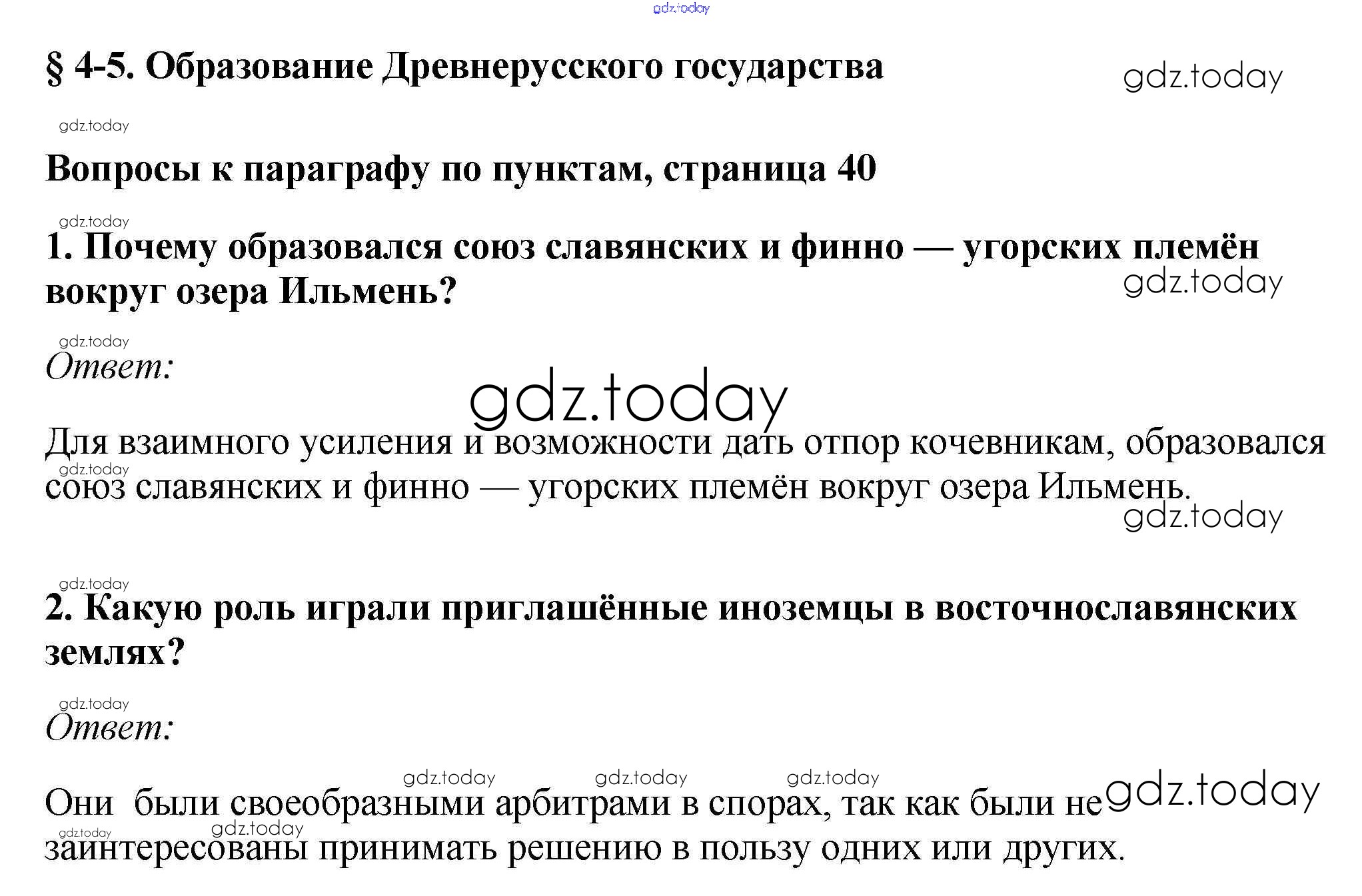 Ответы к §4-5. Образование Древнерусского государства Учебник 2016 (решение) стр.40 Учебнику по Истории России для 6 класса Андреев, Федоров Дрофа, Дрофа Вертикаль 2016, 2020
