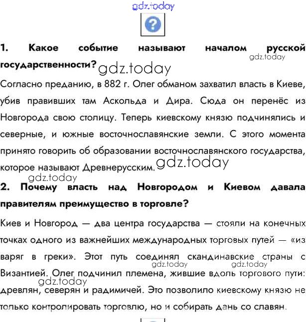На страницах сайта gdz.today вы найдете учебный и вспомогательный материал, направленный на улучшения знаний школьной программы. ГДЗ - онлайн мир знаний §4-5. Образование Древнерусского государства Учебник 2016 (решение) стр.43 Учебнику по Истории России для 6 класса Андреев, Федоров Дрофа, Дрофа Вертикаль 2016, 2020