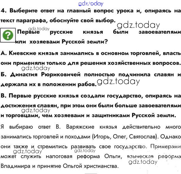 На страницах сайта gdz.today вы найдете учебный и вспомогательный материал, направленный на улучшения знаний школьной программы. ГДЗ - онлайн мир знаний §4-5. Образование Древнерусского государства Учебник 2016 (решение) стр.48 Учебнику по Истории России для 6 класса Андреев, Федоров Дрофа, Дрофа Вертикаль 2016, 2020