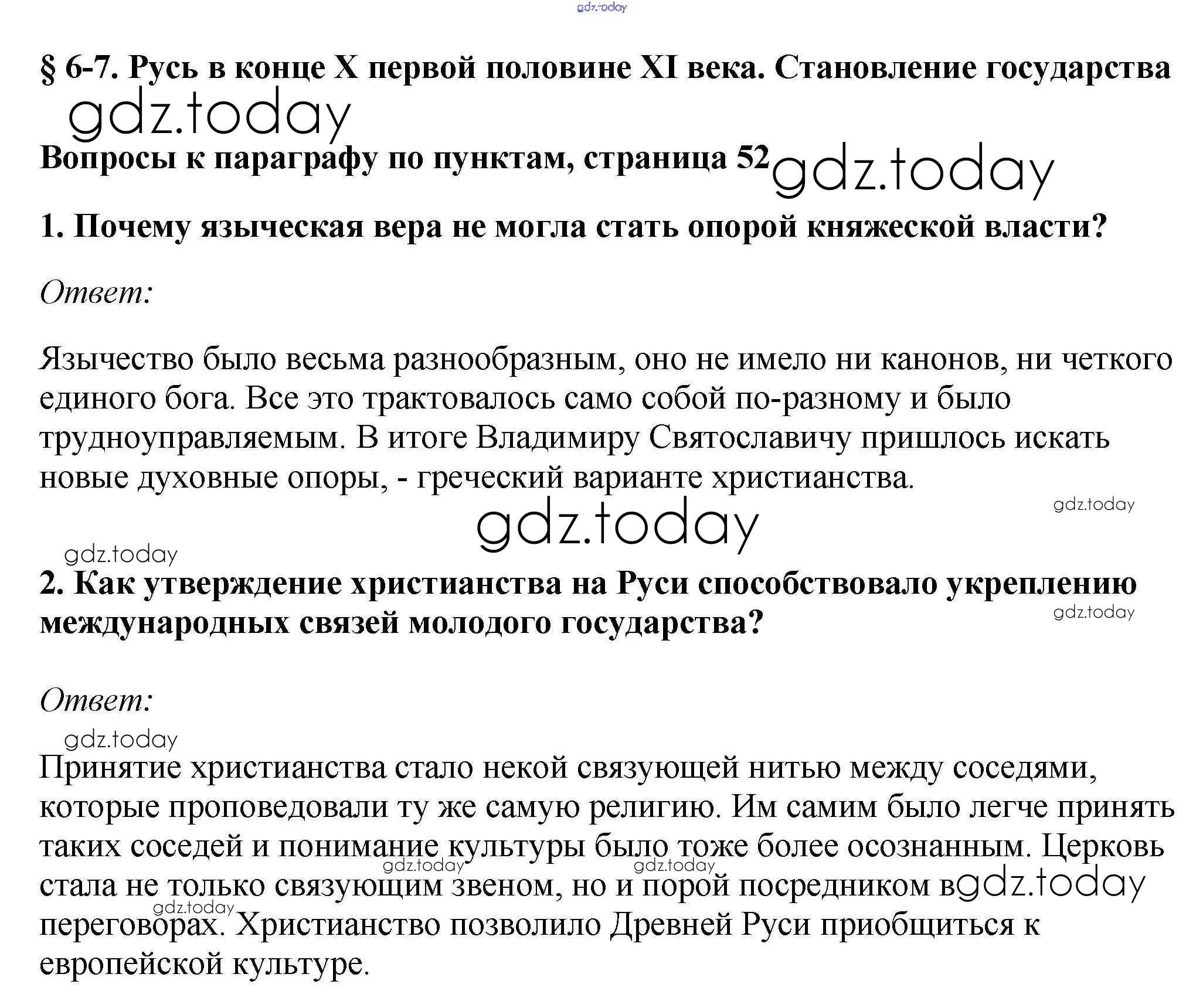 На страницах сайта gdz.today вы найдете учебный и вспомогательный материал, направленный на улучшения знаний школьной программы. ГДЗ - онлайн мир знаний §6-7. Русь в конце X первой половине XI века. Становление государства Учебник 2016 (решение) стр.52 Учебнику по Истории России для 6 класса Андреев, Федоров Дрофа, Дрофа Вертикаль 2016, 2020