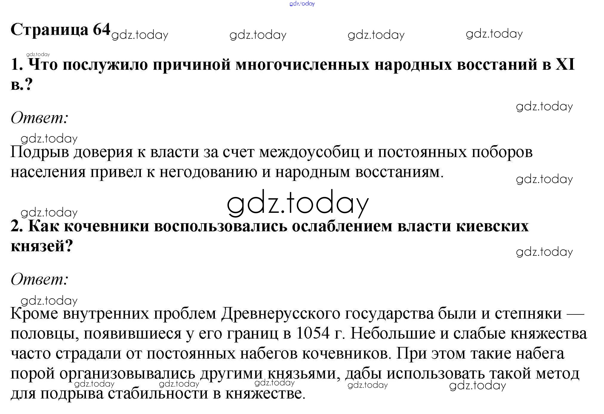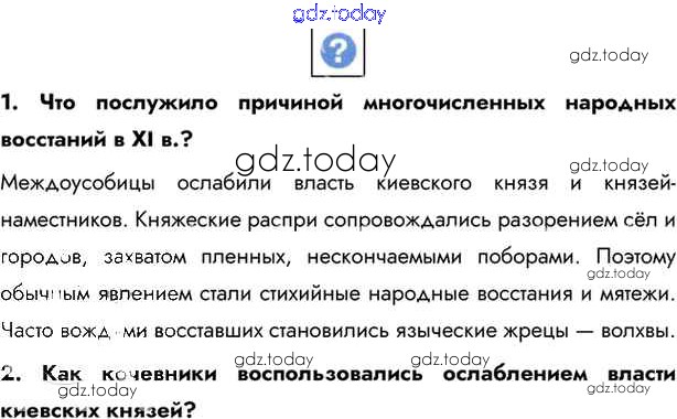 На страницах сайта gdz.today вы найдете учебный и вспомогательный материал, направленный на улучшения знаний школьной программы. ГДЗ - онлайн мир знаний §8-9. Русь в середине XI — начале XII в. Учебник 2016 (решение) стр.64 Учебнику по Истории России для 6 класса Андреев, Федоров Дрофа, Дрофа Вертикаль 2016, 2020