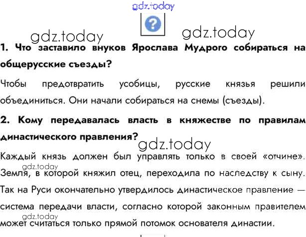 На страницах сайта gdz.today вы найдете учебный и вспомогательный материал, направленный на улучшения знаний школьной программы. ГДЗ - онлайн мир знаний §8-9. Русь в середине XI — начале XII в. Учебник 2016 (решение) стр.66 Учебнику по Истории России для 6 класса Андреев, Федоров Дрофа, Дрофа Вертикаль 2016, 2020