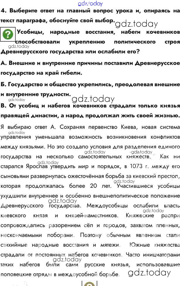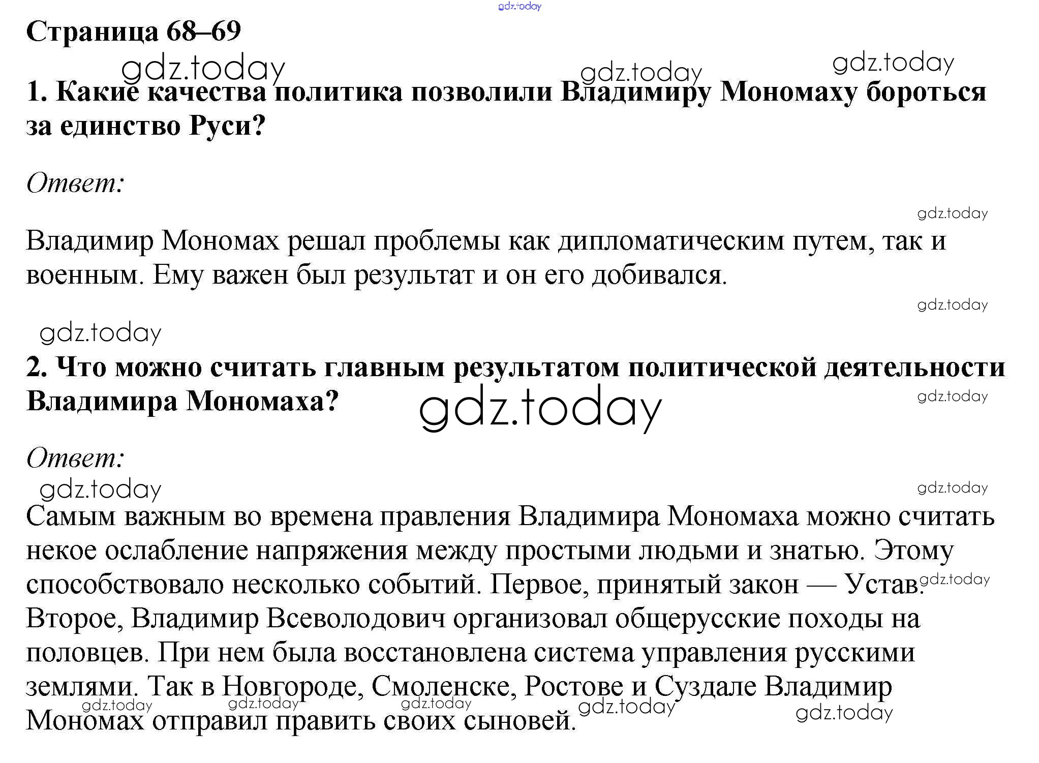 На страницах сайта gdz.today вы найдете учебный и вспомогательный материал, направленный на улучшения знаний школьной программы. ГДЗ - онлайн мир знаний §8-9. Русь в середине XI — начале XII в. Учебник 2016 (решение) стр.68 Учебнику по Истории России для 6 класса Андреев, Федоров Дрофа, Дрофа Вертикаль 2016, 2020