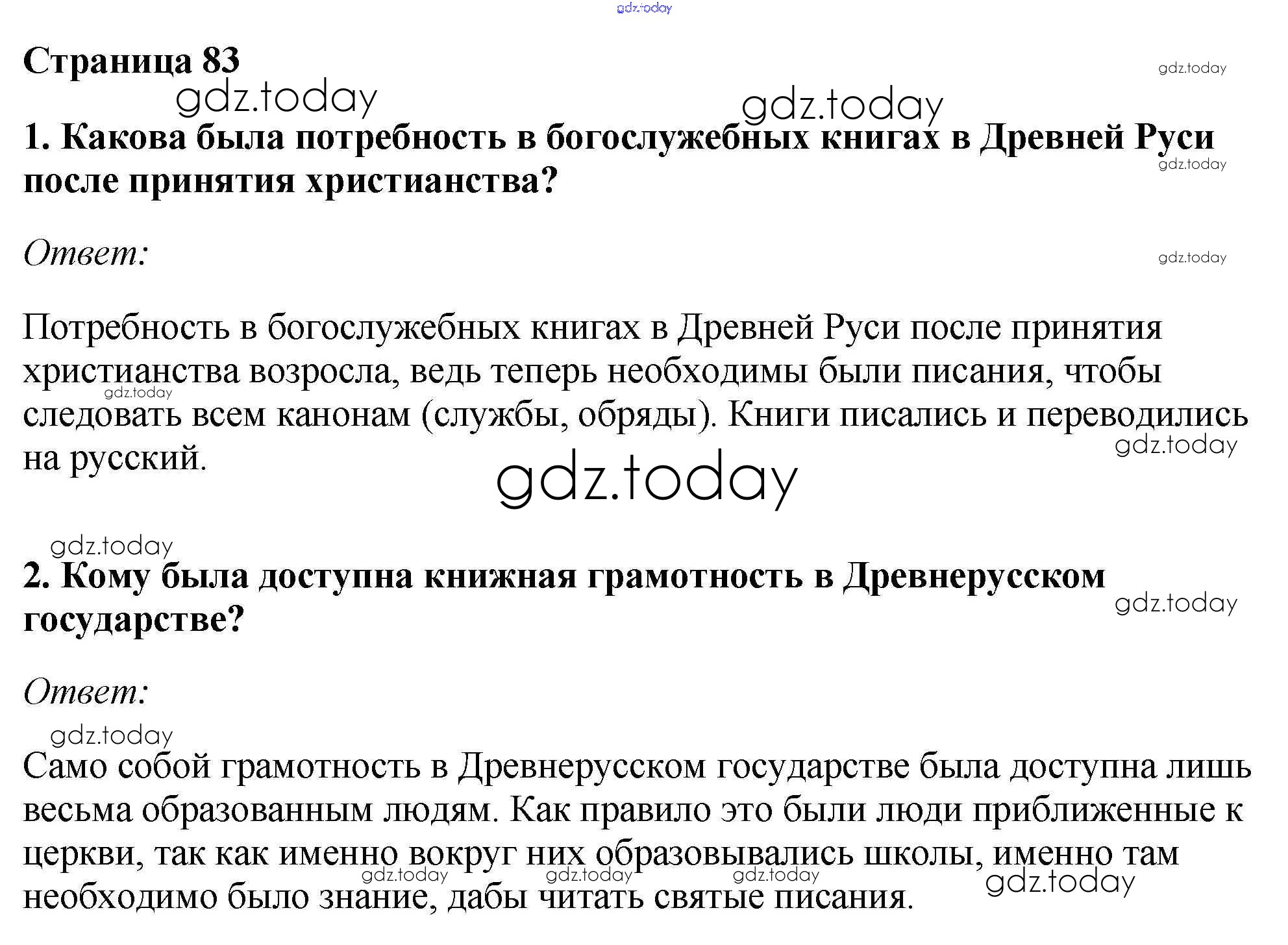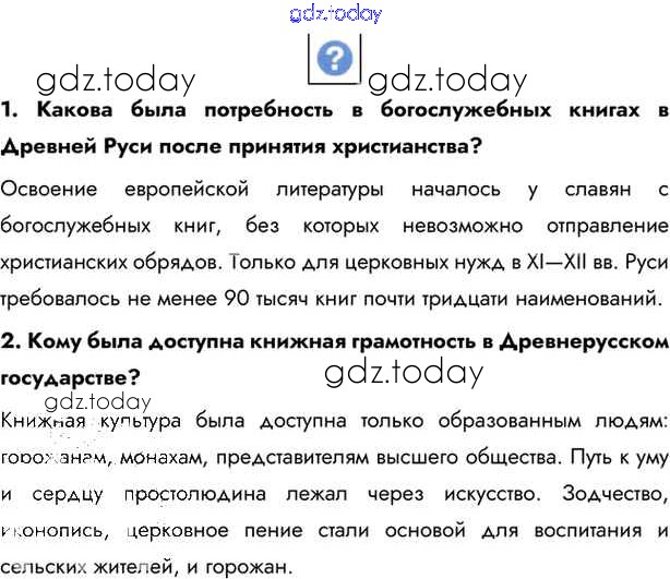 На страницах сайта gdz.today вы найдете учебный и вспомогательный материал, направленный на улучшения знаний школьной программы. ГДЗ - онлайн мир знаний §11-12. Древнерусская культура Учебник 2016 (решение) стр.83 Учебнику по Истории России для 6 класса Андреев, Федоров Дрофа, Дрофа Вертикаль 2016, 2020