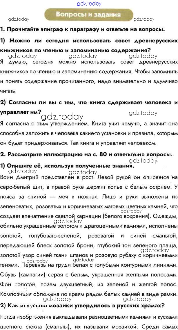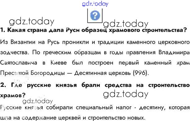 На страницах сайта gdz.today вы найдете учебный и вспомогательный материал, направленный на улучшения знаний школьной программы. ГДЗ - онлайн мир знаний §11-12. Древнерусская культура Учебник 2016 (решение) стр.85 Учебнику по Истории России для 6 класса Андреев, Федоров Дрофа, Дрофа Вертикаль 2016, 2020