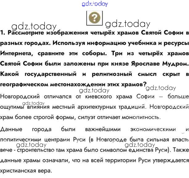 На страницах сайта gdz.today вы найдете учебный и вспомогательный материал, направленный на улучшения знаний школьной программы. ГДЗ - онлайн мир знаний §11-12. Древнерусская культура Учебник 2016 (решение) стр.87 Учебнику по Истории России для 6 класса Андреев, Федоров Дрофа, Дрофа Вертикаль 2016, 2020