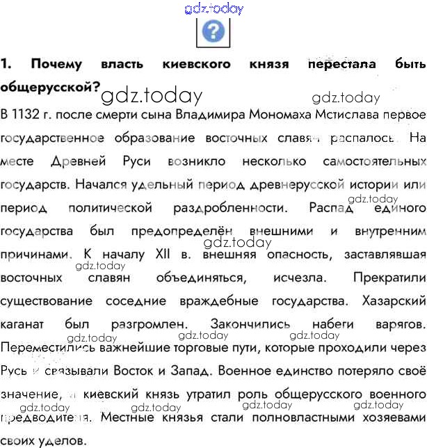 Ответы к §13. Начало удельного периода Княжества Южной Руси Учебник 2016 (решение) стр.92 Учебнику по Истории России для 6 класса Андреев, Федоров Дрофа, Дрофа Вертикаль 2016, 2020
