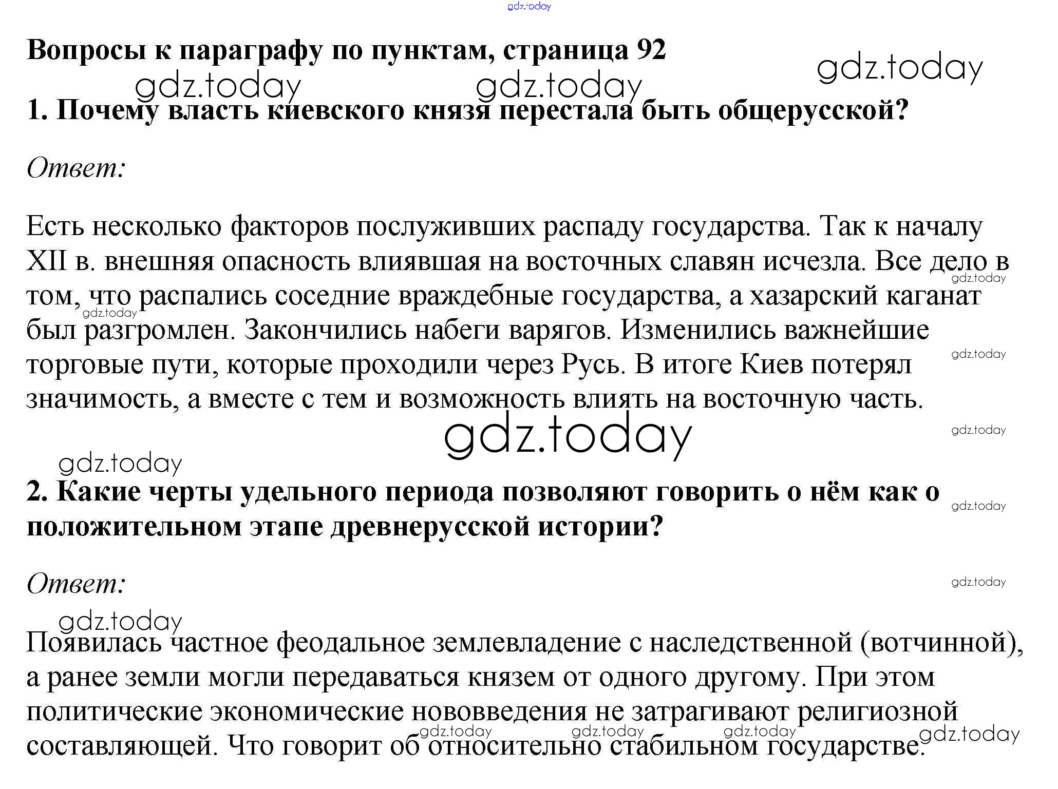 На страницах сайта gdz.today вы найдете учебный и вспомогательный материал, направленный на улучшения знаний школьной программы. ГДЗ - онлайн мир знаний §13. Начало удельного периода Княжества Южной Руси Учебник 2016 (решение) стр.92 Учебнику по Истории России для 6 класса Андреев, Федоров Дрофа, Дрофа Вертикаль 2016, 2020
