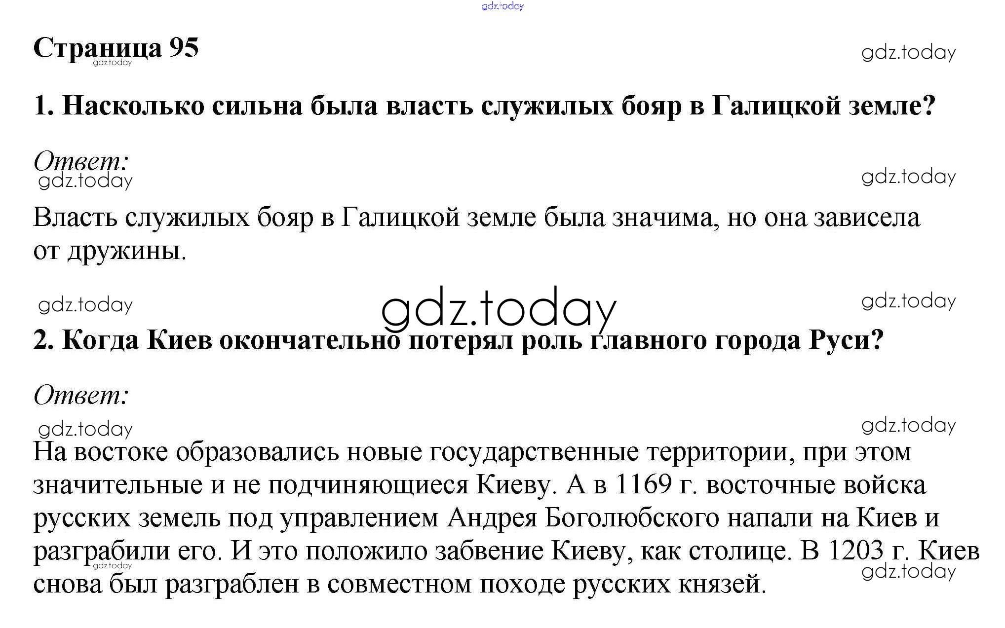 Ответы к §13. Начало удельного периода Княжества Южной Руси Учебник 2016 (решение) стр.95 Учебнику по Истории России для 6 класса Андреев, Федоров Дрофа, Дрофа Вертикаль 2016, 2020