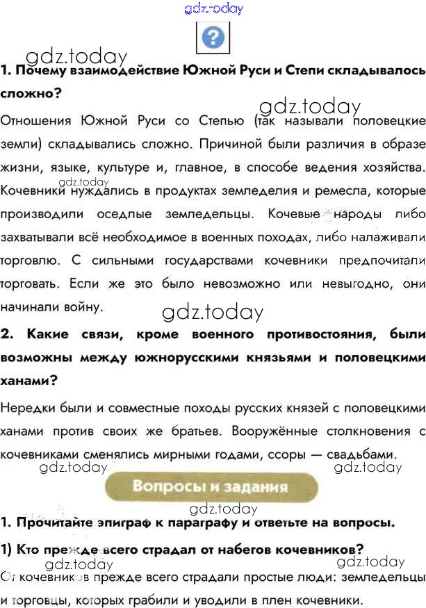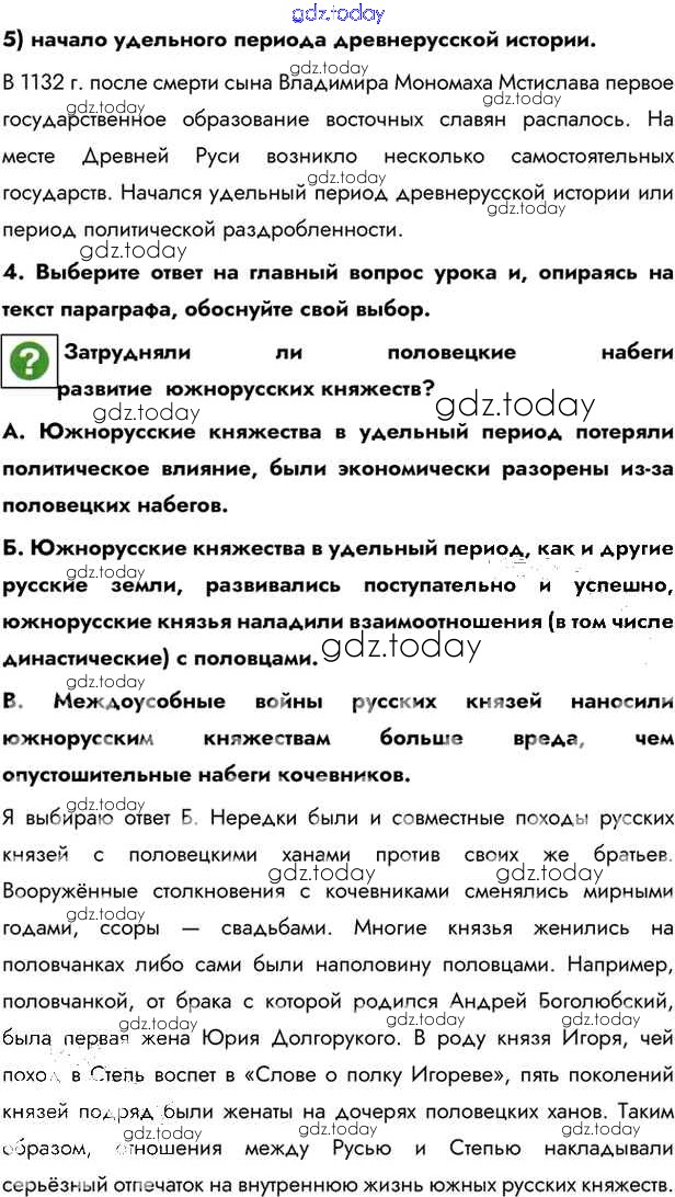 На страницах сайта gdz.today вы найдете учебный и вспомогательный материал, направленный на улучшения знаний школьной программы. ГДЗ - онлайн мир знаний §13. Начало удельного периода Княжества Южной Руси Учебник 2016 (решение) стр.97 Учебнику по Истории России для 6 класса Андреев, Федоров Дрофа, Дрофа Вертикаль 2016, 2020