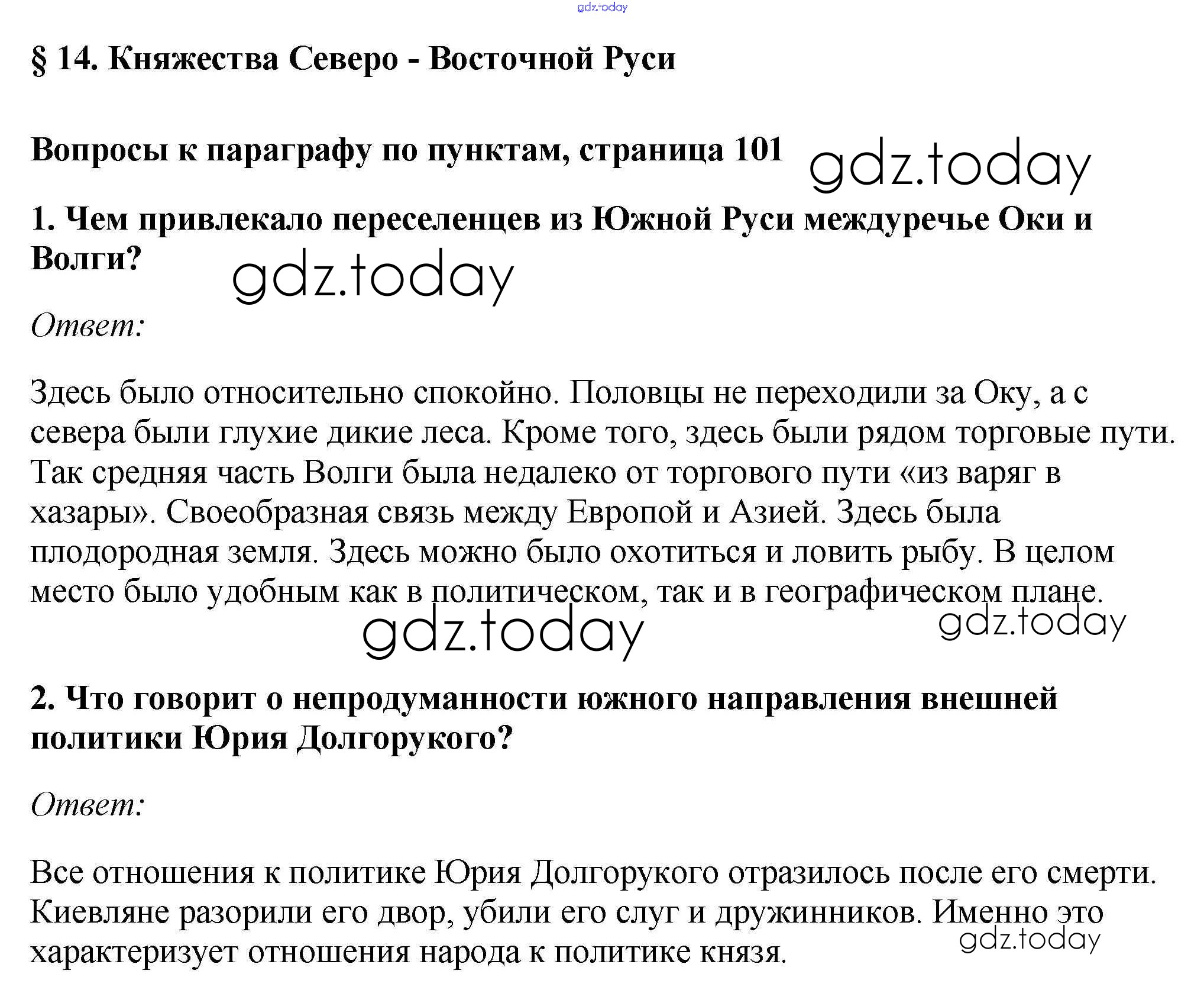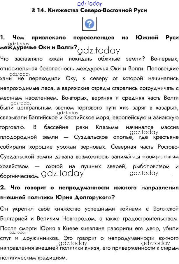 На страницах сайта gdz.today вы найдете учебный и вспомогательный материал, направленный на улучшения знаний школьной программы. ГДЗ - онлайн мир знаний §14. Княжества Северо - Восточной Руси Учебник 2016 (решение) стр.101 Учебнику по Истории России для 6 класса Андреев, Федоров Дрофа, Дрофа Вертикаль 2016, 2020