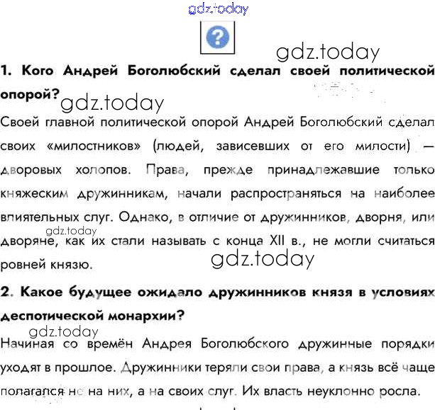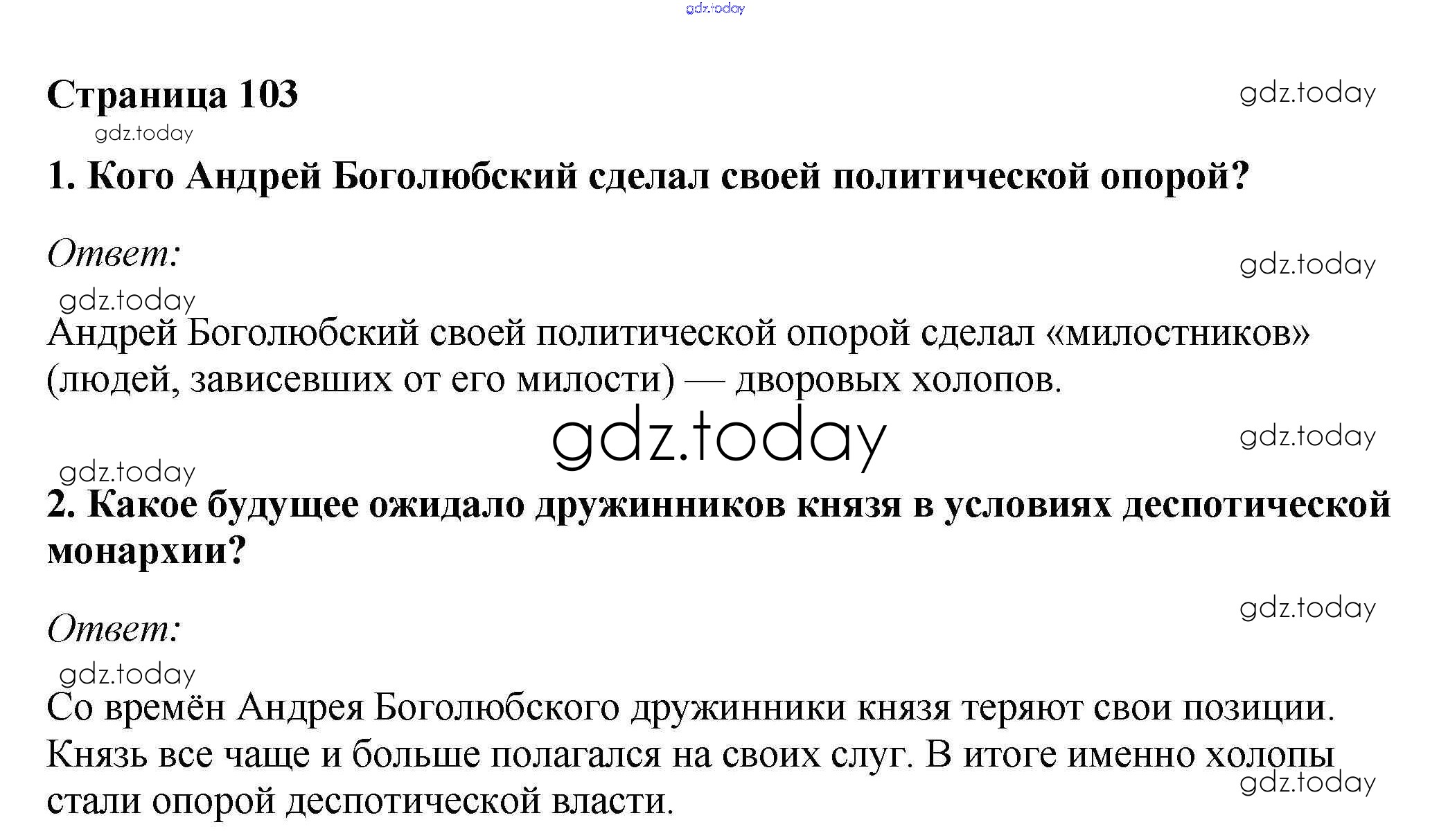На страницах сайта gdz.today вы найдете учебный и вспомогательный материал, направленный на улучшения знаний школьной программы. ГДЗ - онлайн мир знаний §14. Княжества Северо - Восточной Руси Учебник 2016 (решение) стр.103 Учебнику по Истории России для 6 класса Андреев, Федоров Дрофа, Дрофа Вертикаль 2016, 2020