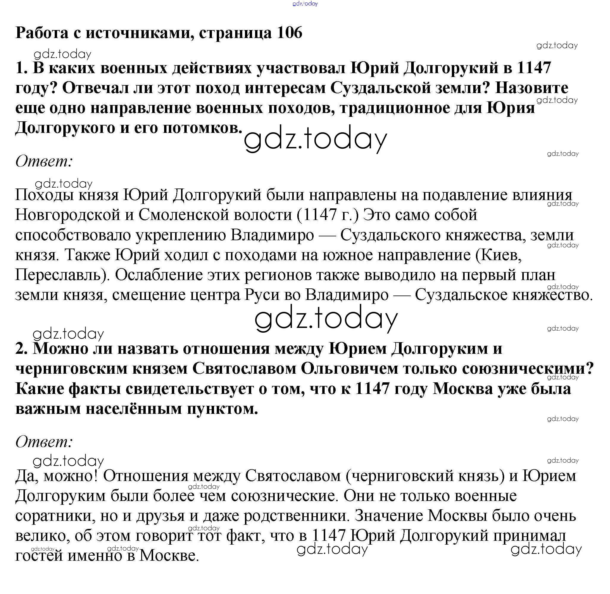 На страницах сайта gdz.today вы найдете учебный и вспомогательный материал, направленный на улучшения знаний школьной программы. ГДЗ - онлайн мир знаний §14. Княжества Северо - Восточной Руси Учебник 2016 (решение) стр.106 Учебнику по Истории России для 6 класса Андреев, Федоров Дрофа, Дрофа Вертикаль 2016, 2020