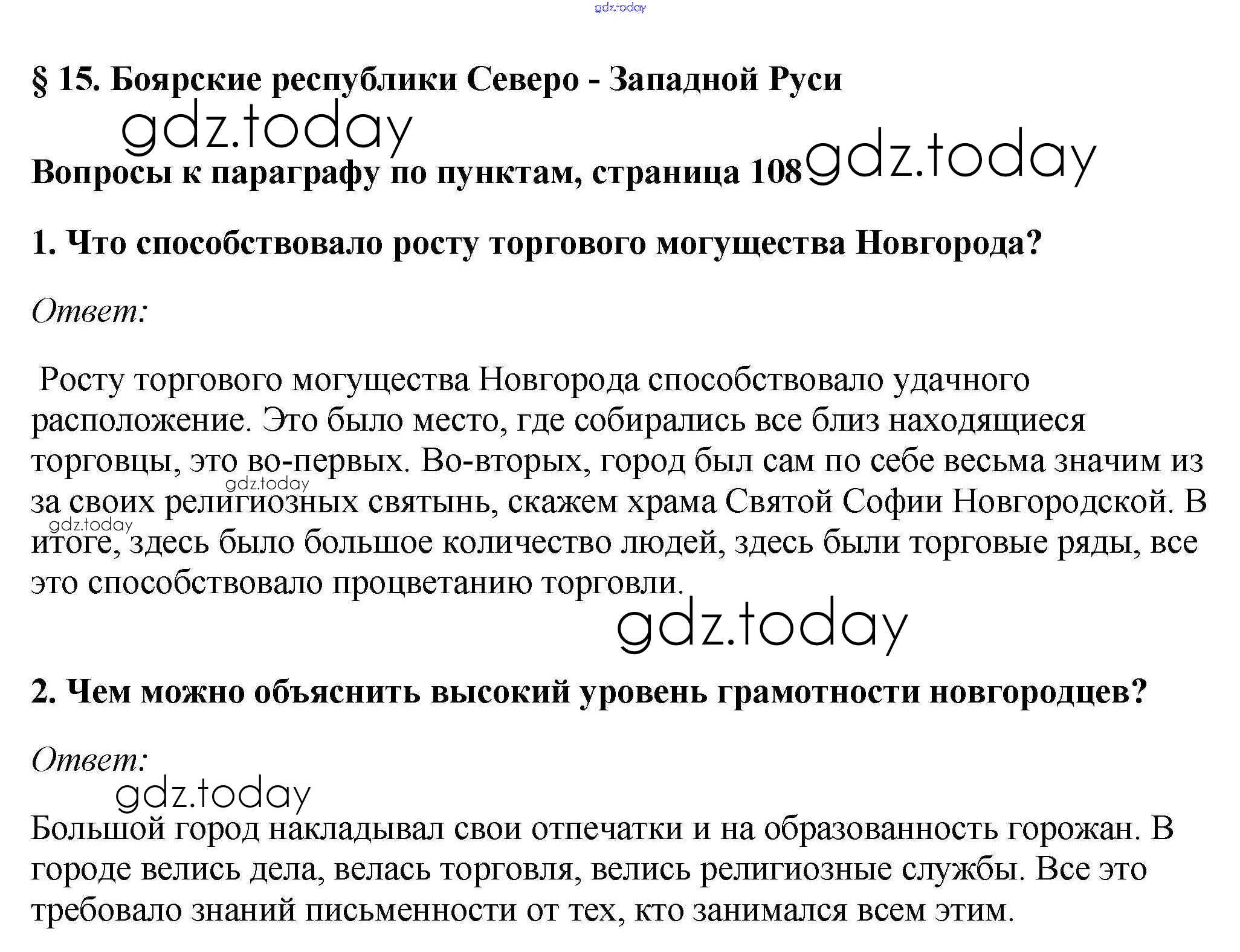Ответы к §15. Боярские республики Северо - Западной Руси Учебник 2016 (решение) стр.108 Учебнику по Истории России для 6 класса Андреев, Федоров Дрофа, Дрофа Вертикаль 2016, 2020