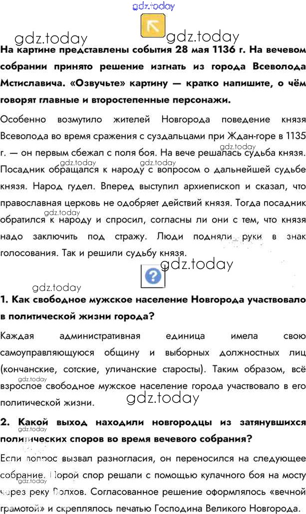 На страницах сайта gdz.today вы найдете учебный и вспомогательный материал, направленный на улучшения знаний школьной программы. ГДЗ - онлайн мир знаний §15. Боярские республики Северо - Западной Руси Учебник 2016 (решение) стр.111 Учебнику по Истории России для 6 класса Андреев, Федоров Дрофа, Дрофа Вертикаль 2016, 2020