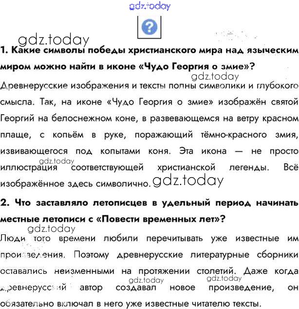На страницах сайта gdz.today вы найдете учебный и вспомогательный материал, направленный на улучшения знаний школьной программы. ГДЗ - онлайн мир знаний §16-17. Культура Руси Учебник 2016 (решение) стр.118 Учебнику по Истории России для 6 класса Андреев, Федоров Дрофа, Дрофа Вертикаль 2016, 2020