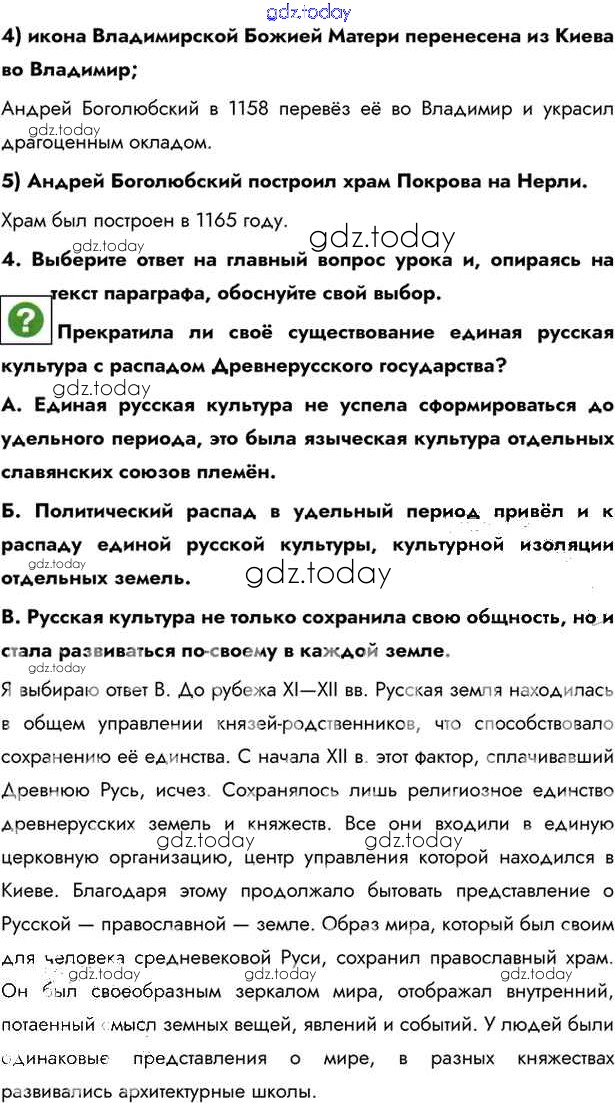 На страницах сайта gdz.today вы найдете учебный и вспомогательный материал, направленный на улучшения знаний школьной программы. ГДЗ - онлайн мир знаний §16-17. Культура Руси Учебник 2016 (решение) стр.122 Учебнику по Истории России для 6 класса Андреев, Федоров Дрофа, Дрофа Вертикаль 2016, 2020