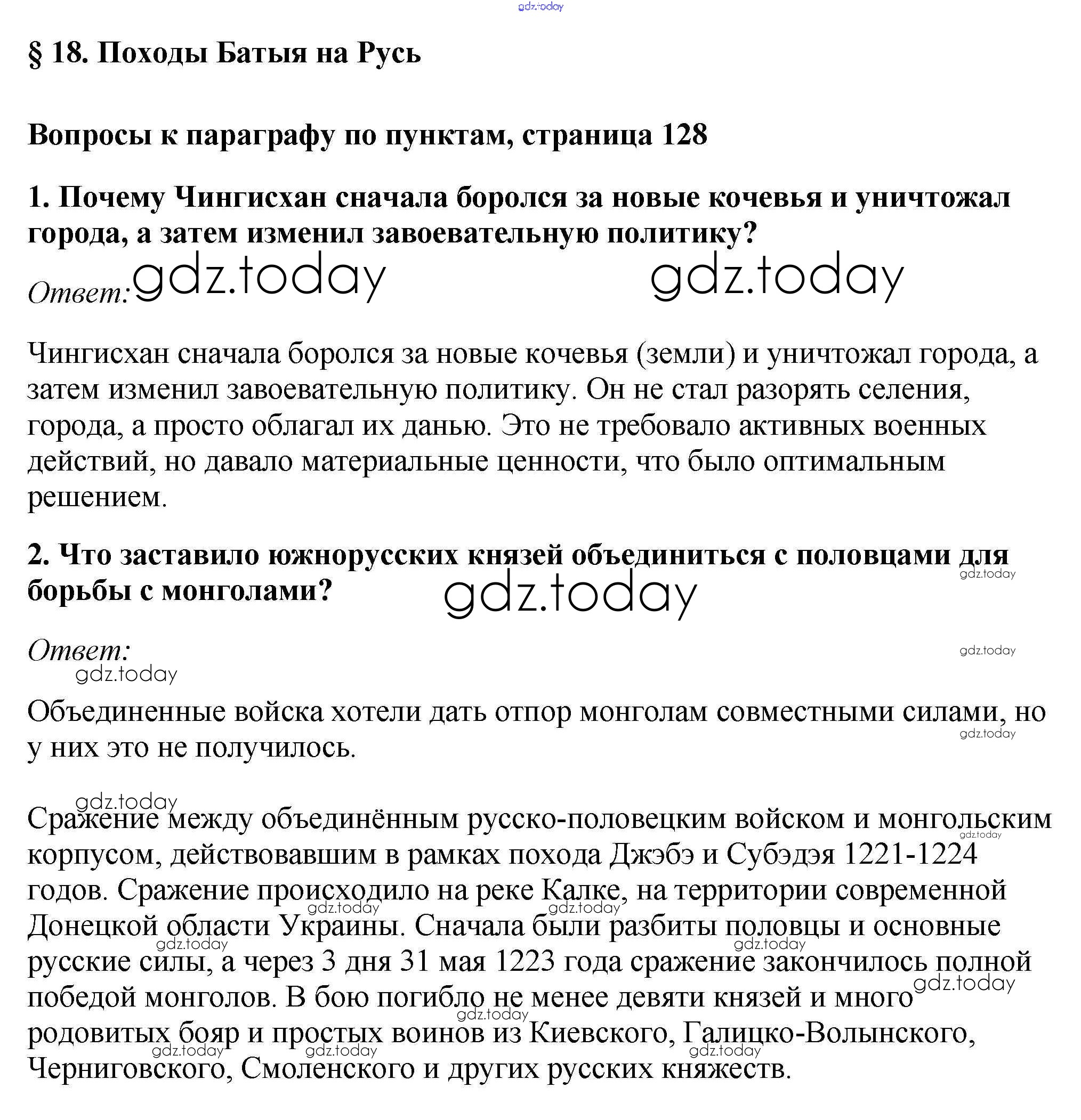 Ответы к §18. Походы Батыя на Русь Учебник 2016 (решение) стр.128 Учебнику по Истории России для 6 класса Андреев, Федоров Дрофа, Дрофа Вертикаль 2016, 2020