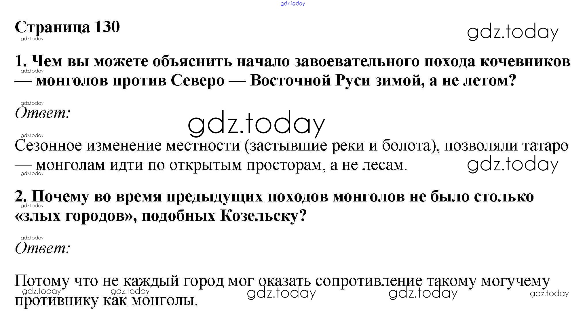 Ответы к §18. Походы Батыя на Русь Учебник 2016 (решение) стр.130 Учебнику по Истории России для 6 класса Андреев, Федоров Дрофа, Дрофа Вертикаль 2016, 2020
