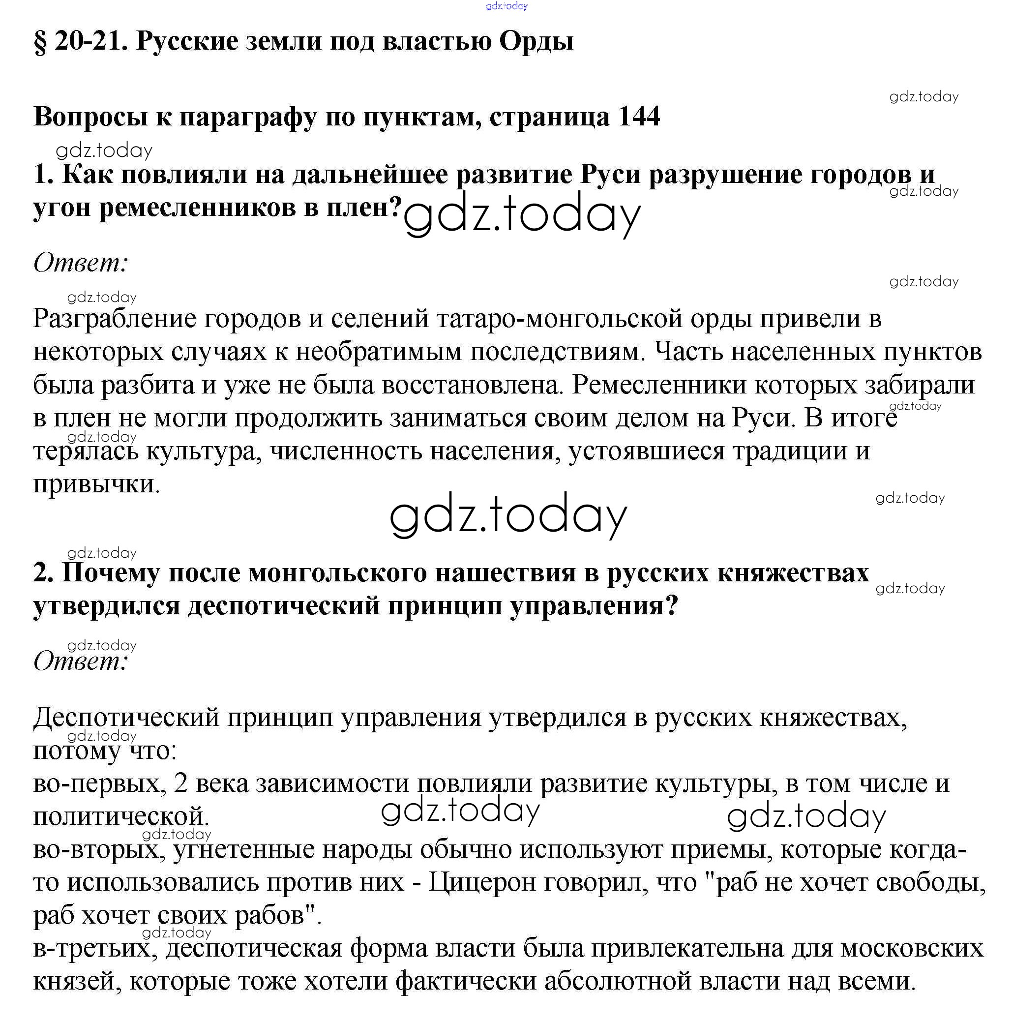 Ответы к §20-21. Русские земли под властью Орды Учебник 2016 (решение) стр.144 Учебнику по Истории России для 6 класса Андреев, Федоров Дрофа, Дрофа Вертикаль 2016, 2020