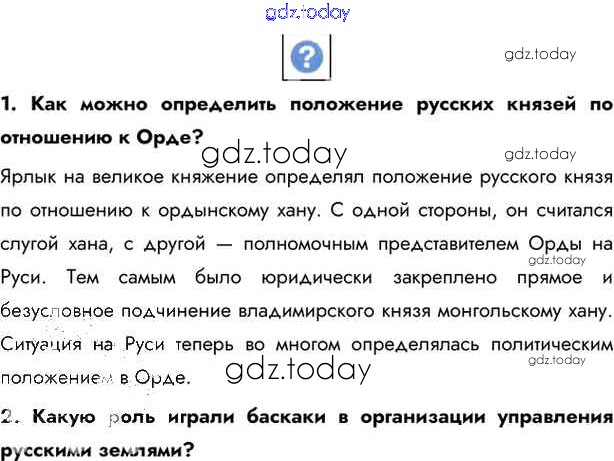 На страницах сайта gdz.today вы найдете учебный и вспомогательный материал, направленный на улучшения знаний школьной программы. ГДЗ - онлайн мир знаний §20-21. Русские земли под властью Орды Учебник 2016 (решение) стр.147 Учебнику по Истории России для 6 класса Андреев, Федоров Дрофа, Дрофа Вертикаль 2016, 2020