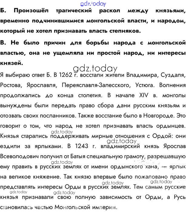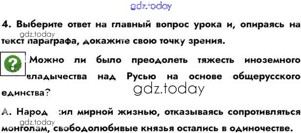 На страницах сайта gdz.today вы найдете учебный и вспомогательный материал, направленный на улучшения знаний школьной программы. ГДЗ - онлайн мир знаний §20-21. Русские земли под властью Орды Учебник 2016 (решение) стр.150 Учебнику по Истории России для 6 класса Андреев, Федоров Дрофа, Дрофа Вертикаль 2016, 2020