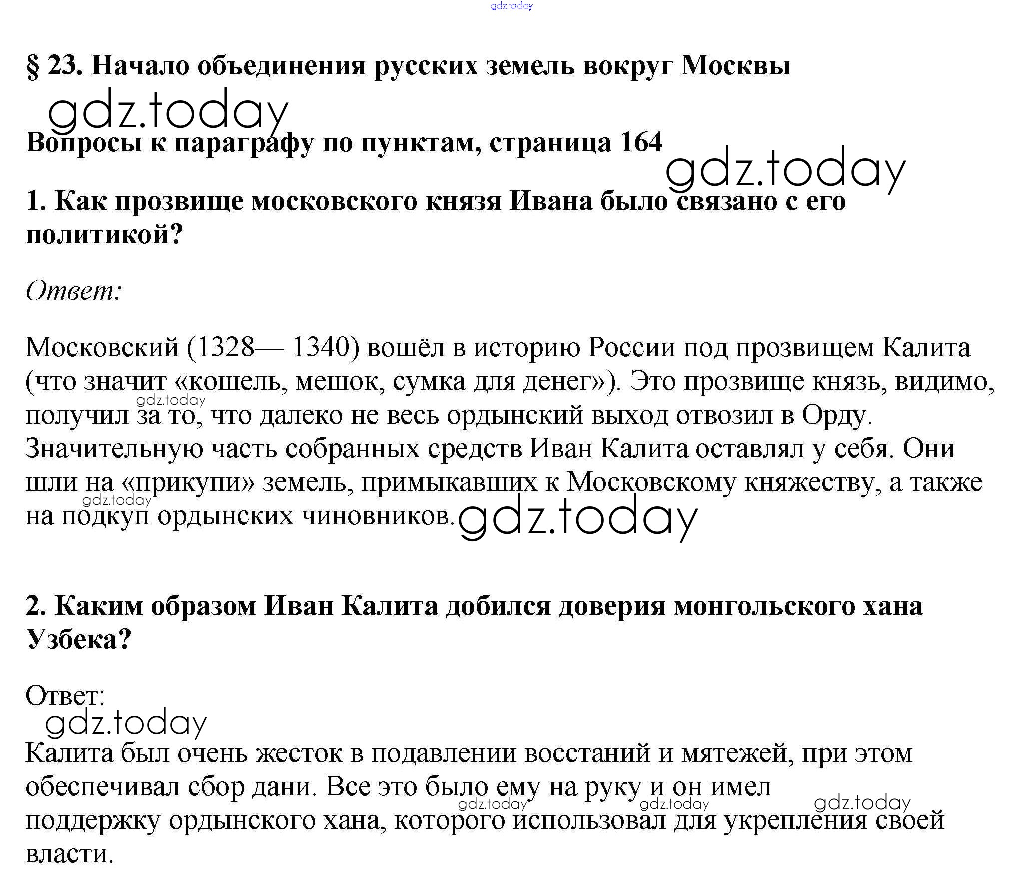 Ответы к §23. Начало объединения русских земель вокруг Москвы Учебник 2016 (решение) стр.164 Учебнику по Истории России для 6 класса Андреев, Федоров Дрофа, Дрофа Вертикаль 2016, 2020