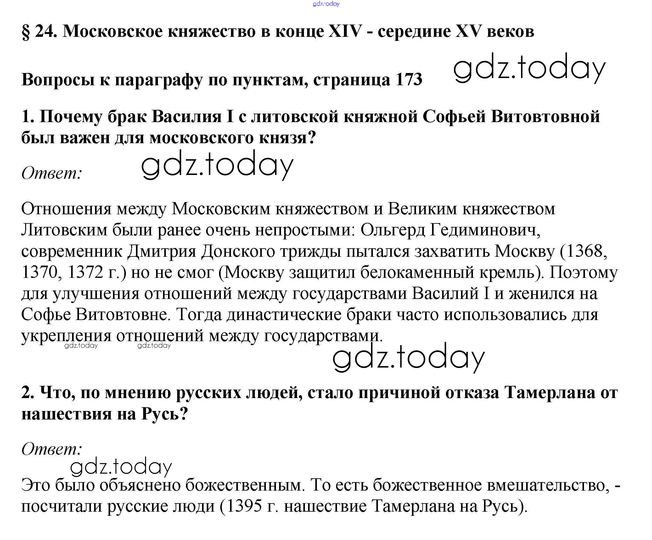 Ответы к §24. Московское княжество в конце XIV - середине XV веков Учебник 2016 (решение) стр.173 Учебнику по Истории России для 6 класса Андреев, Федоров Дрофа, Дрофа Вертикаль 2016, 2020