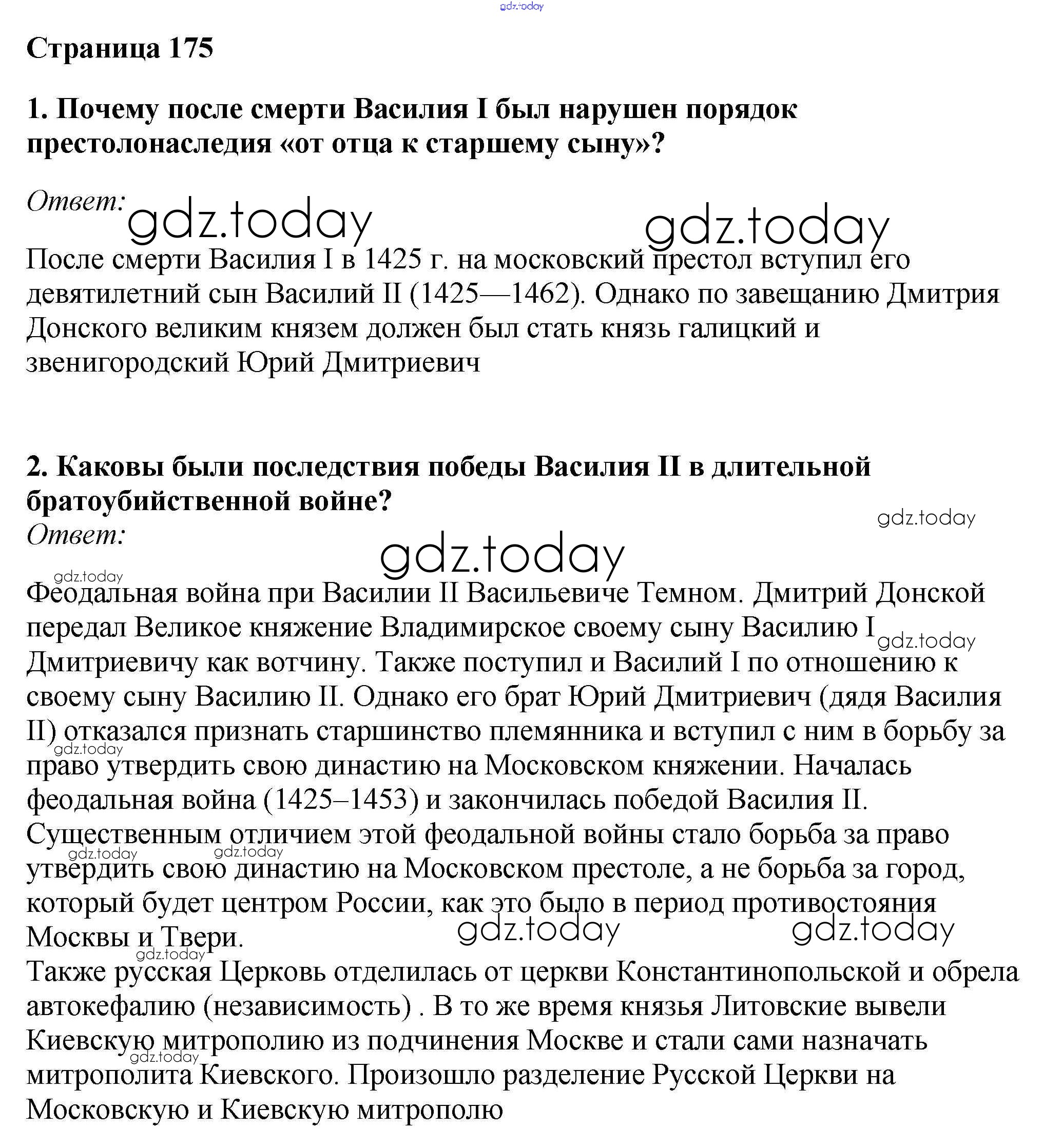 На страницах сайта gdz.today вы найдете учебный и вспомогательный материал, направленный на улучшения знаний школьной программы. ГДЗ - онлайн мир знаний §24. Московское княжество в конце XIV - середине XV веков Учебник 2016 (решение) стр.175 Учебнику по Истории России для 6 класса Андреев, Федоров Дрофа, Дрофа Вертикаль 2016, 2020