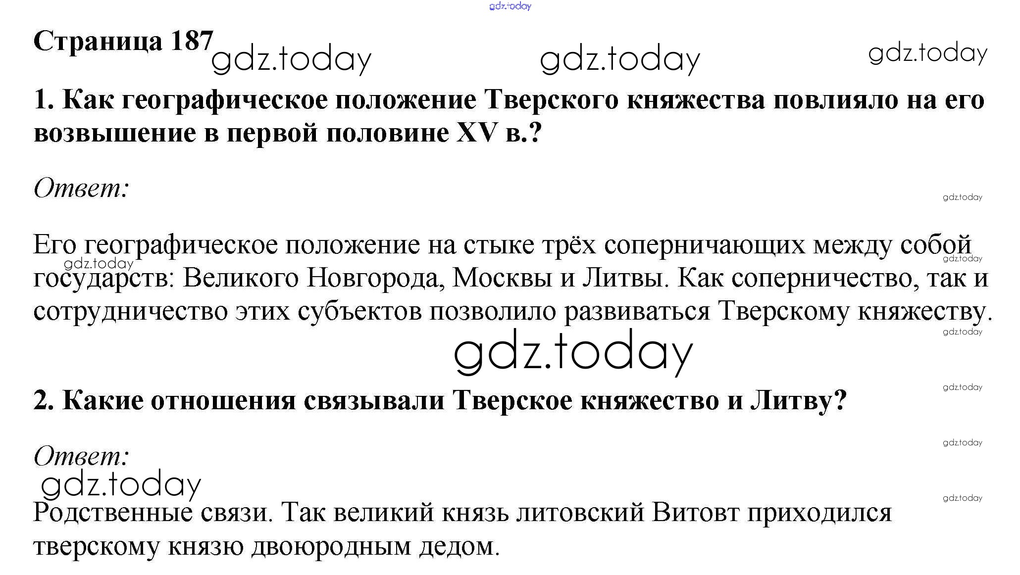 На страницах сайта gdz.today вы найдете учебный и вспомогательный материал, направленный на улучшения знаний школьной программы. ГДЗ - онлайн мир знаний §25. Соперники Москвы Учебник 2016 (решение) стр.187 Учебнику по Истории России для 6 класса Андреев, Федоров Дрофа, Дрофа Вертикаль 2016, 2020