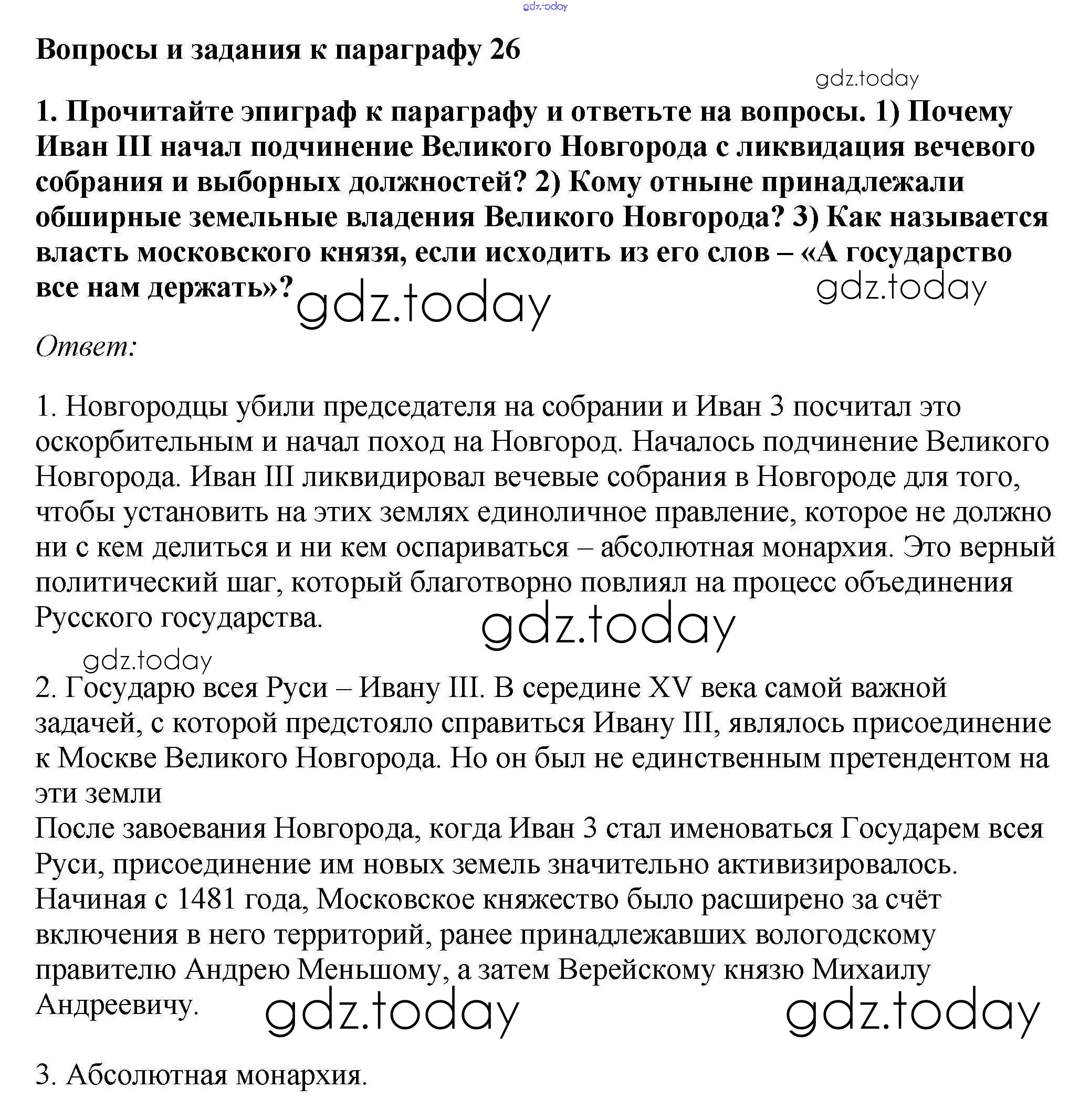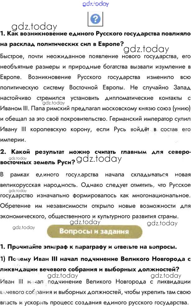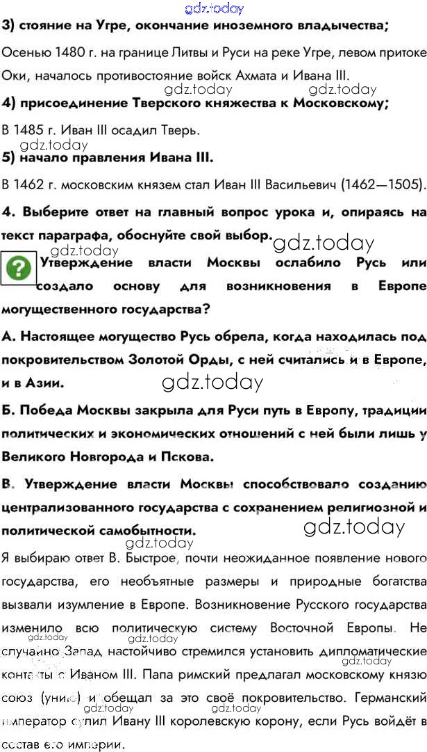На страницах сайта gdz.today вы найдете учебный и вспомогательный материал, направленный на улучшения знаний школьной программы. ГДЗ - онлайн мир знаний §26. Объединение русских земель вокруг Москвы Учебник 2016 (решение) стр.200 Учебнику по Истории России для 6 класса Андреев, Федоров Дрофа, Дрофа Вертикаль 2016, 2020