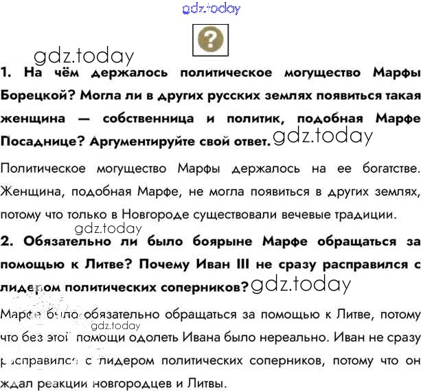 На страницах сайта gdz.today вы найдете учебный и вспомогательный материал, направленный на улучшения знаний школьной программы. ГДЗ - онлайн мир знаний §26. Объединение русских земель вокруг Москвы Учебник 2016 (решение) стр.202 Учебнику по Истории России для 6 класса Андреев, Федоров Дрофа, Дрофа Вертикаль 2016, 2020