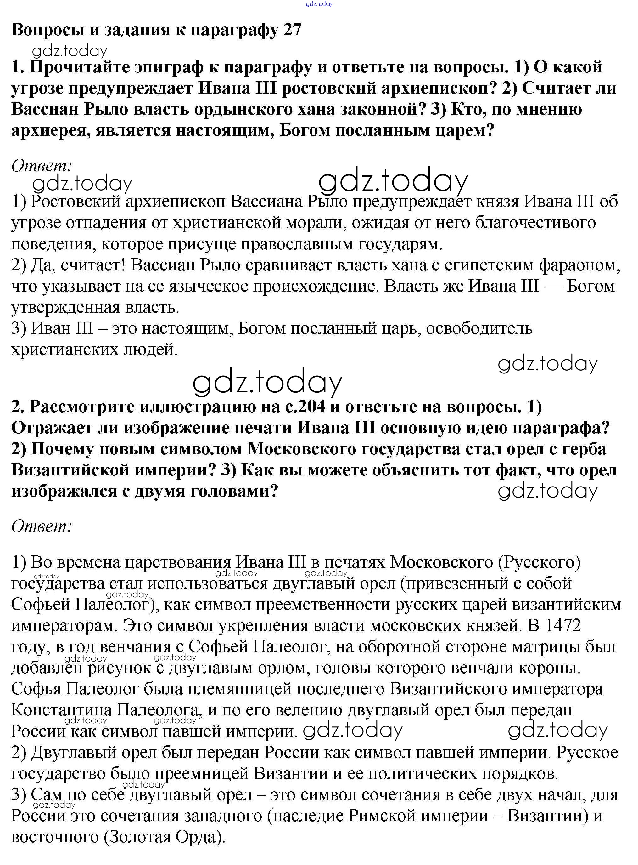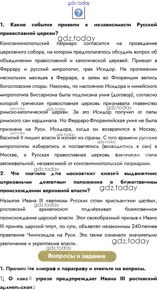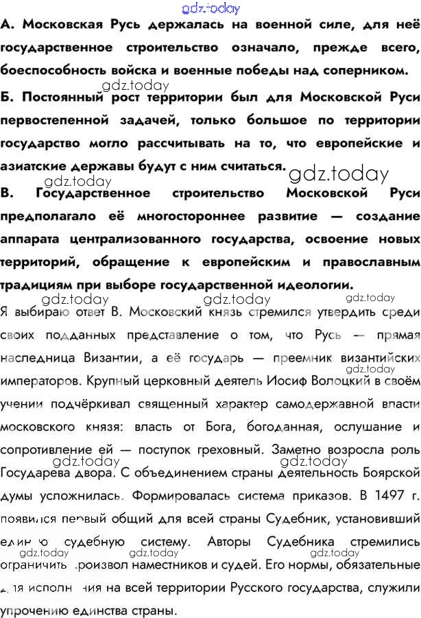 На страницах сайта gdz.today вы найдете учебный и вспомогательный материал, направленный на улучшения знаний школьной программы. ГДЗ - онлайн мир знаний §27. Русское государство во второй половине XV - начале XVI вв. Учебник 2016 (решение) стр.209 Учебнику по Истории России для 6 класса Андреев, Федоров Дрофа, Дрофа Вертикаль 2016, 2020