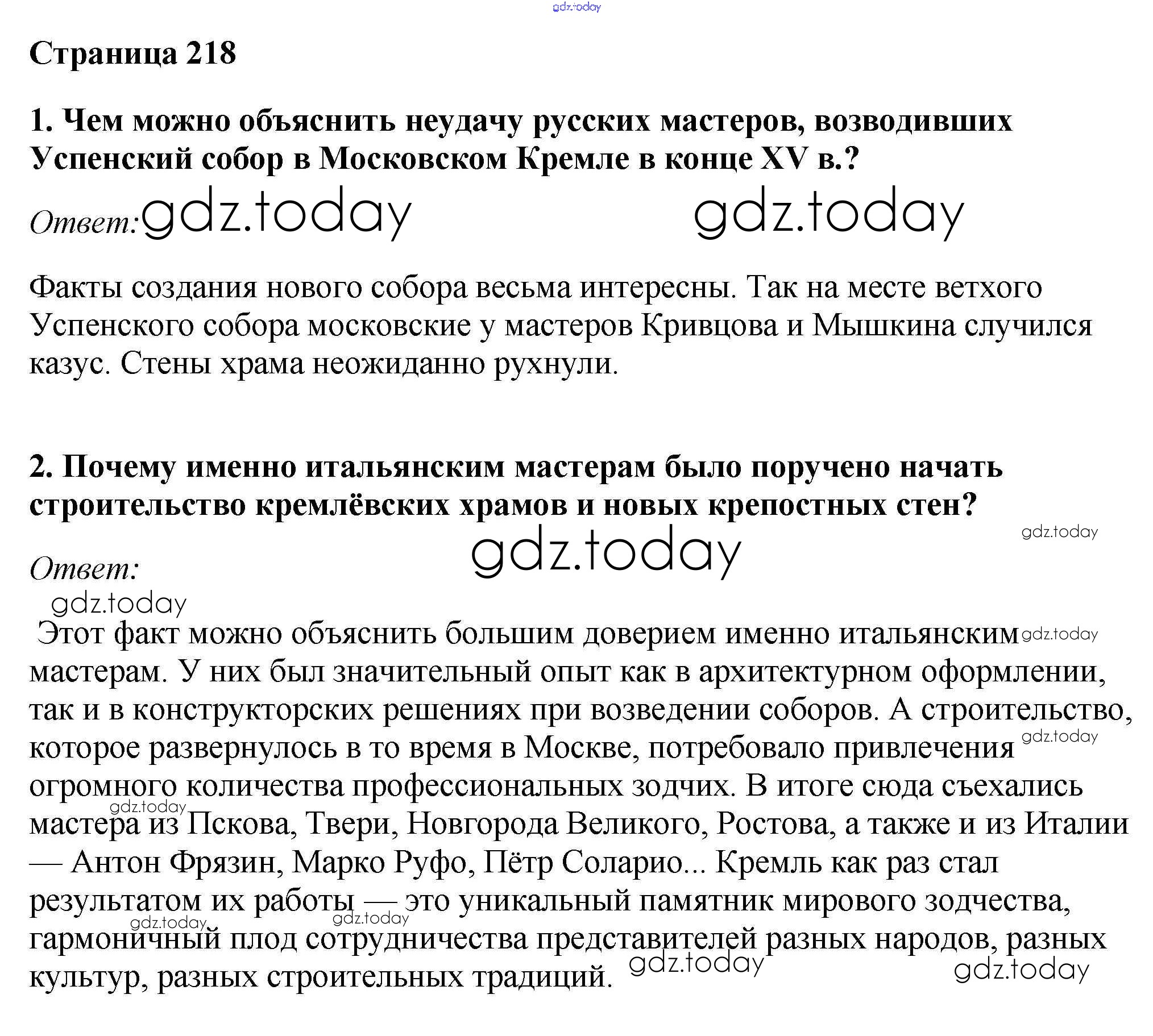 Ответы к §28-29. Русская культура в XIV - начале XVI вв. Учебник 2016 (решение) стр.218 Учебнику по Истории России для 6 класса Андреев, Федоров Дрофа, Дрофа Вертикаль 2016, 2020