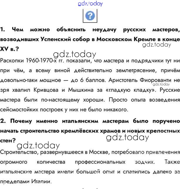 На страницах сайта gdz.today вы найдете учебный и вспомогательный материал, направленный на улучшения знаний школьной программы. ГДЗ - онлайн мир знаний §28-29. Русская культура в XIV - начале XVI вв. Учебник 2016 (решение) стр.218 Учебнику по Истории России для 6 класса Андреев, Федоров Дрофа, Дрофа Вертикаль 2016, 2020