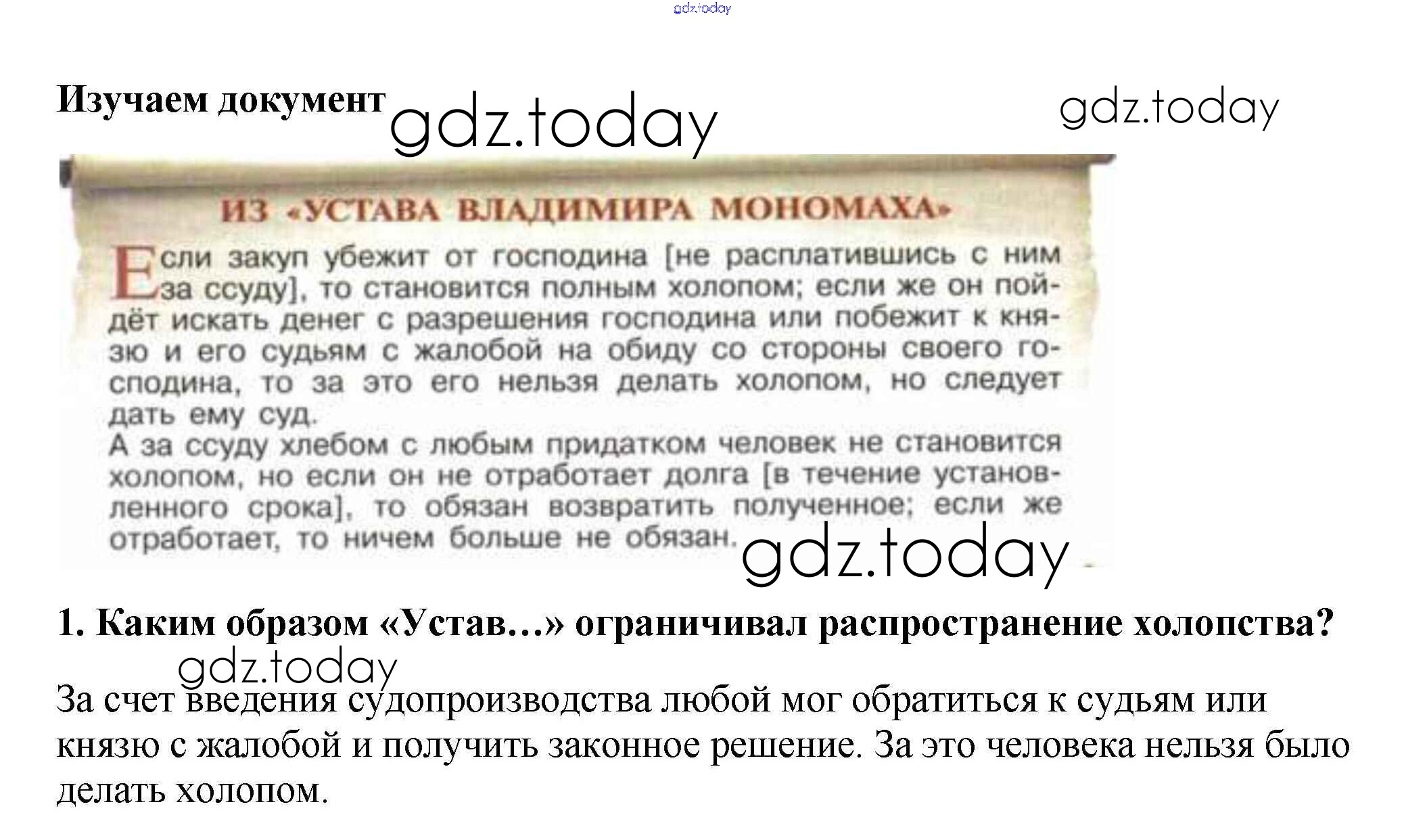На страницах сайта gdz.today вы найдете учебный и вспомогательный материал, направленный на улучшения знаний школьной программы. ГДЗ - онлайн мир знаний Изучаем документ Решение к §8 1 Учебнику по Истории России для 6 класса Арсентьев, Данилов Просвещение 2016