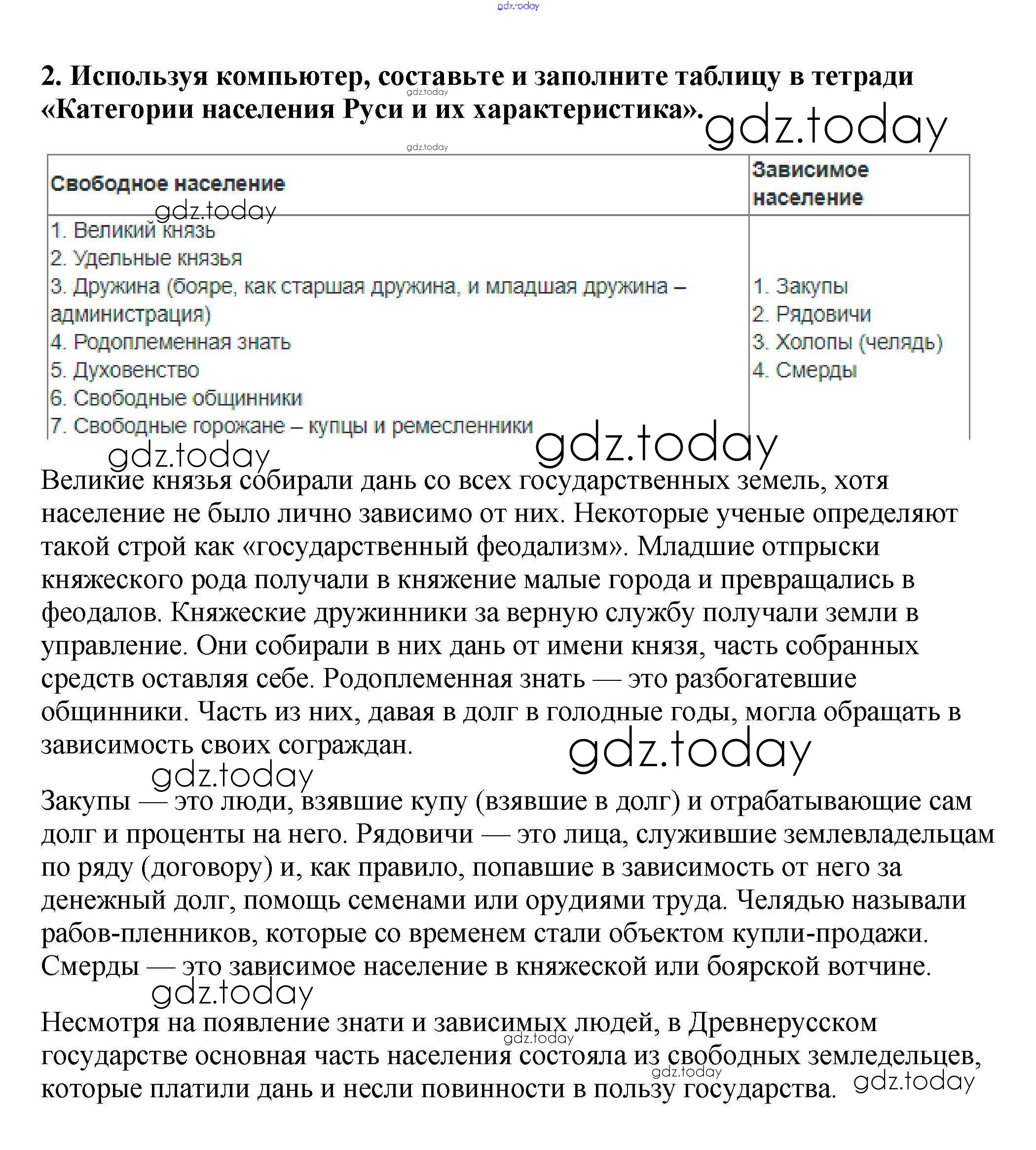 На страницах сайта gdz.today вы найдете учебный и вспомогательный материал, направленный на улучшения знаний школьной программы. ГДЗ - онлайн мир знаний Вопросы и задания для работы с текстом Решение к §9 2 Учебнику по Истории России для 6 класса Арсентьев, Данилов Просвещение 2016
