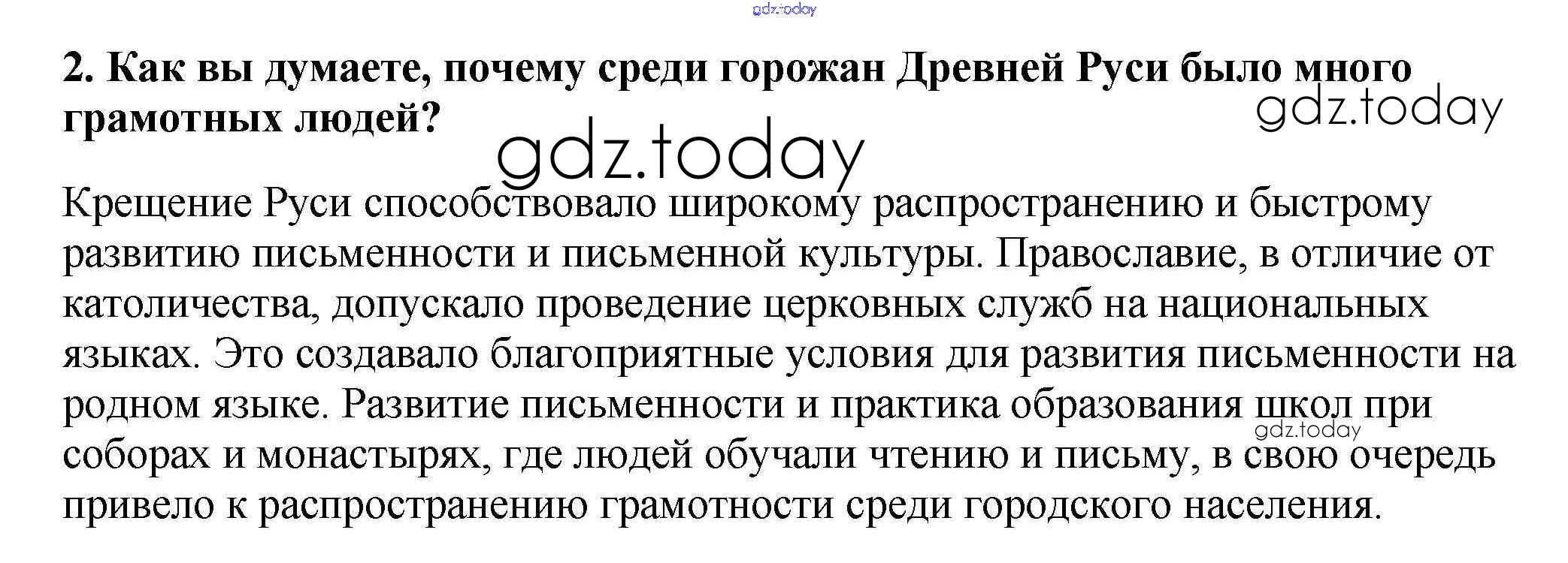 На страницах сайта gdz.today вы найдете учебный и вспомогательный материал, направленный на улучшения знаний школьной программы. ГДЗ - онлайн мир знаний Вопросы и задания для работы с текстом Решение к §10 2 Учебнику по Истории России для 6 класса Арсентьев, Данилов Просвещение 2016