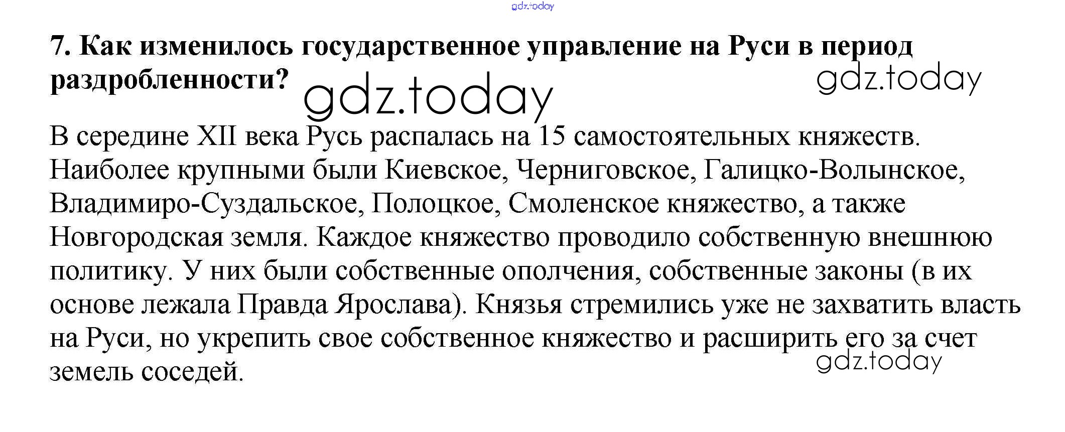 На страницах сайта gdz.today вы найдете учебный и вспомогательный материал, направленный на улучшения знаний школьной программы. ГДЗ - онлайн мир знаний Вопросы и задания для работы с текстом Решение к §12 7 Учебнику по Истории России для 6 класса Арсентьев, Данилов Просвещение 2016