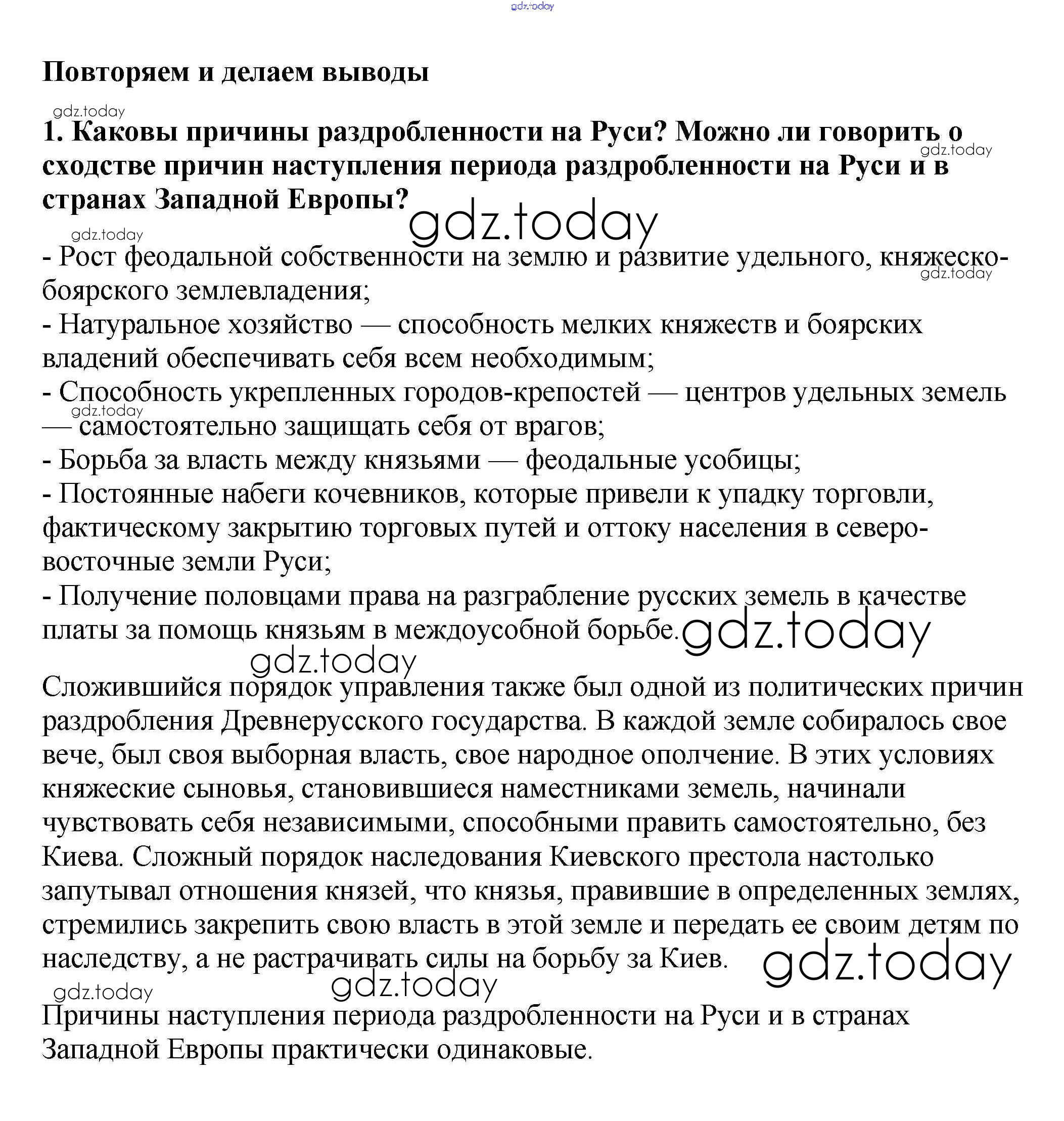 Ответы к Повторяем и делаем выводы Южные и юго-западные русские княжества. 1 Учебнику по Истории России для 6 класса Арсентьев, Данилов Просвещение 2016