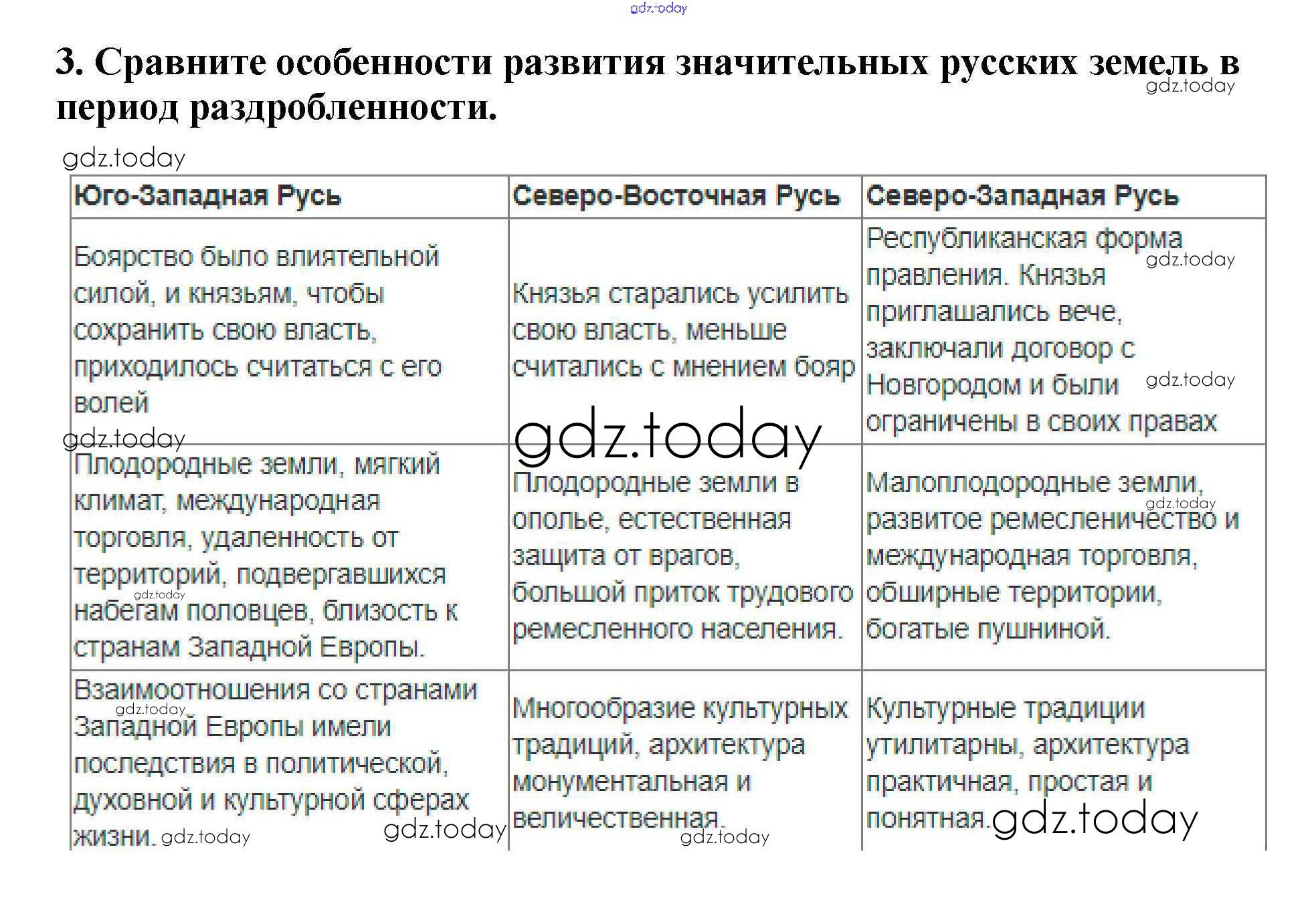 На страницах сайта gdz.today вы найдете учебный и вспомогательный материал, направленный на улучшения знаний школьной программы. ГДЗ - онлайн мир знаний Повторяем и делаем выводы Южные и юго-западные русские княжества. 3 Учебнику по Истории России для 6 класса Арсентьев, Данилов Просвещение 2016