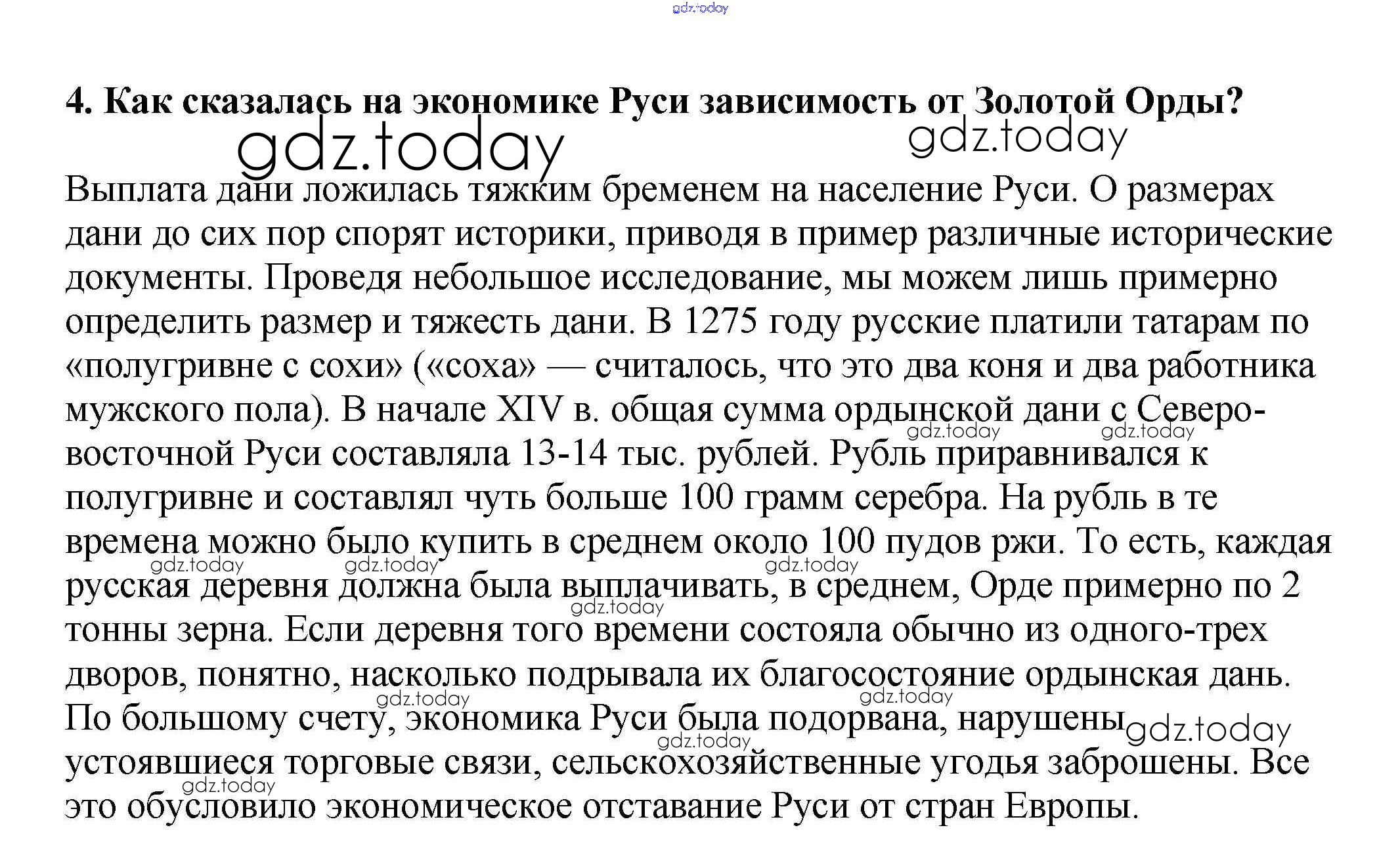 На страницах сайта gdz.today вы найдете учебный и вспомогательный материал, направленный на улучшения знаний школьной программы. ГДЗ - онлайн мир знаний Вопросы и задания для работы с текстом Решение к §18 4 Учебнику по Истории России для 6 класса Арсентьев, Данилов Просвещение 2016